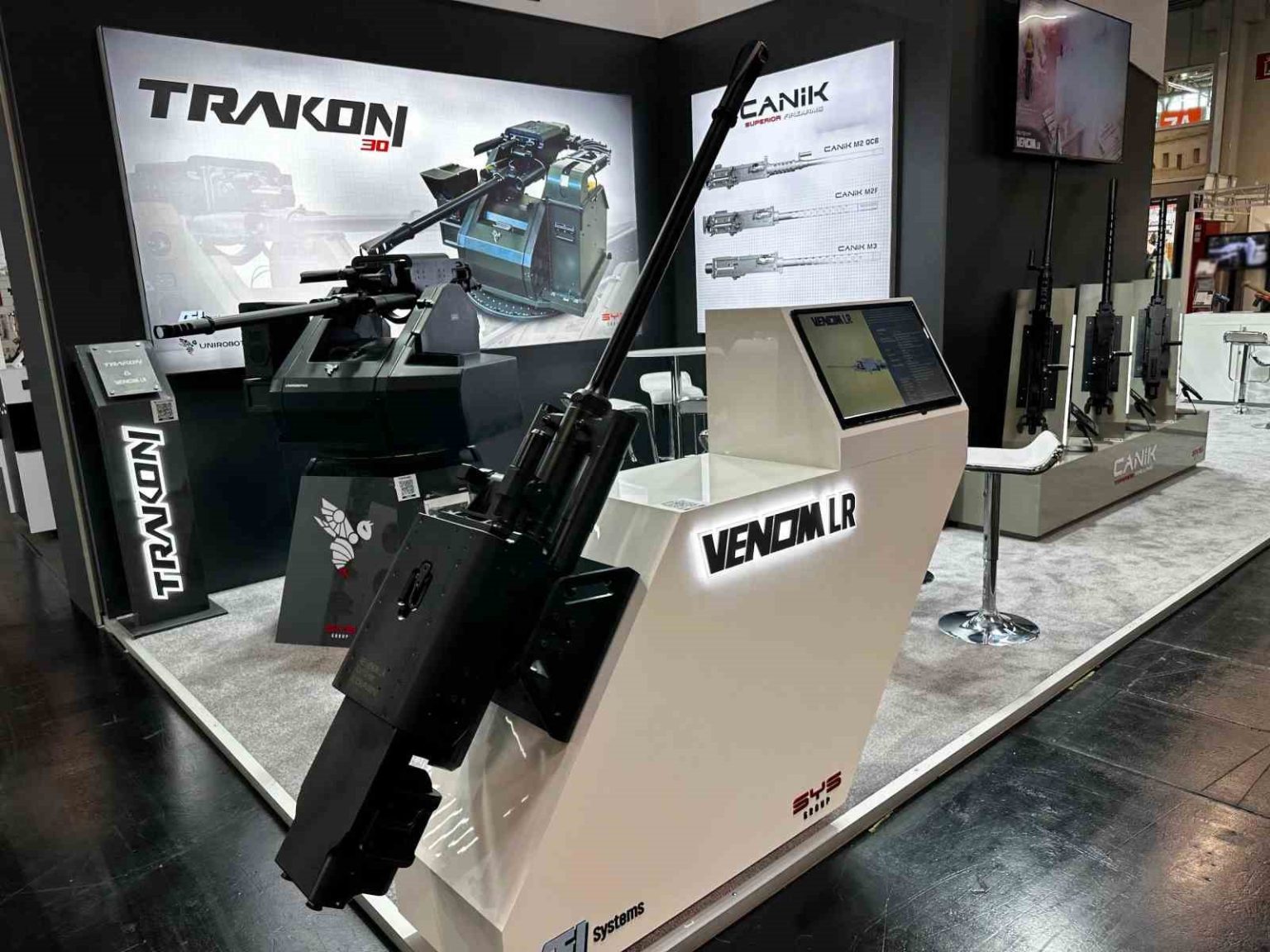 Dünyanın 12,799 mm ağır makineli tüfek alanındaki en geniş ürün ailesini oluşturan CANiK; M2 QCB modeliyle dakikada 650 atım hızında operasyonel güvenilirlik, M2F modeliyle dakikada 950 atım hızında yüksek ateş gücü ve M3 modeliyle dakikada 1.200 atım hızında uçan platformlar ile hava savunma görevleri için optimize edilmiş üstün performans sunuyor. Son dönemde katıldığı tüm fuarlarda büyük ilgi gören TRAKON 30 Uzaktan Komutalı Silah Sistemi (UKSS) ve 30113 milimetre orta kalibre top VENOM LR entegrasyonu, ENFORCE TAC’te de en merak edilen çözümler arasında yer alıyor. Çok maksatlı(Multi Role) olarak en çok talep gören orta kalibre top olan VENOM LR fuarın en innovatif silahı olarak otoritelerden tam not aldı.