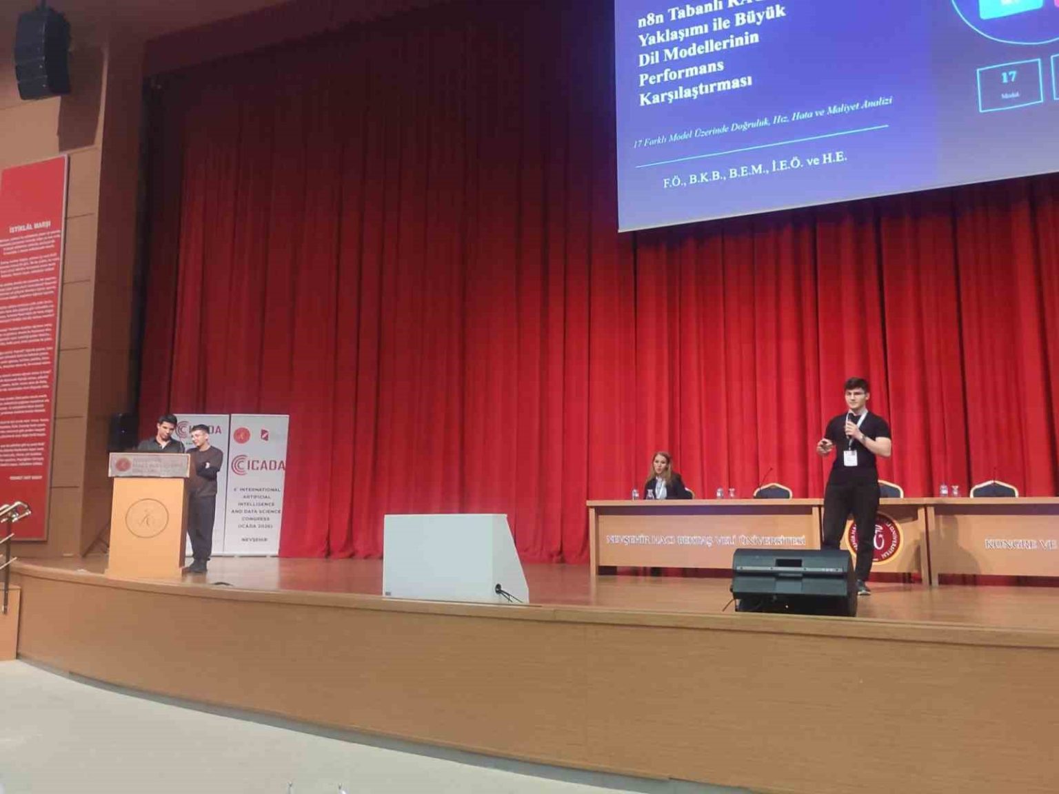 Makaleleri hakem heyeti tarafından kabul edilen öğrenciler Nevşehir Hacı Bektaş Veli Üniversitesi’nde düzenlenen ICADA 2026 Uluslararası Yapay Zekâ Kongresinde, salondaki kongre heyeti ve katılımcıların yanı sıra çevrim içi bağlantıyla kongreye katılan katılımcılara da makalelerini başarılı bir şekilde sundular.