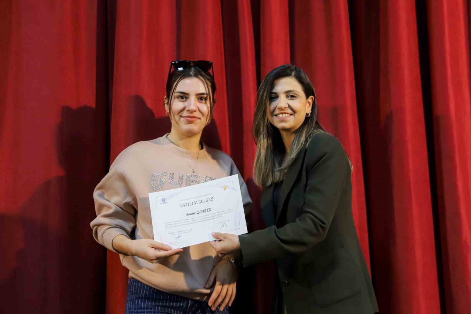 Konuşmaların ardından, kursu başarıyla tamamlayan kadınlara katılım belgeleri takdim edildi.