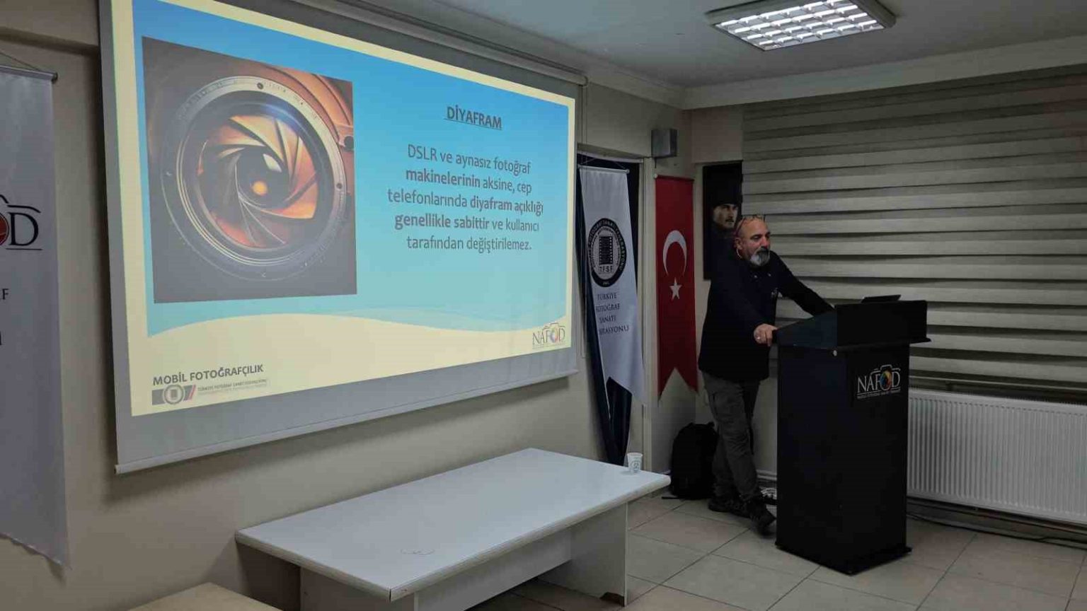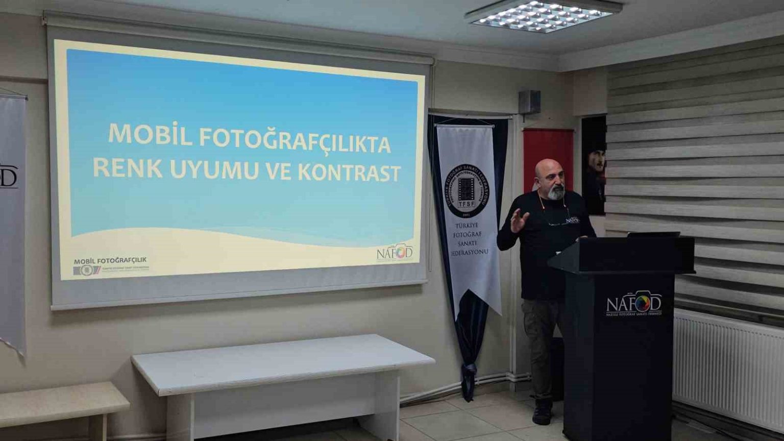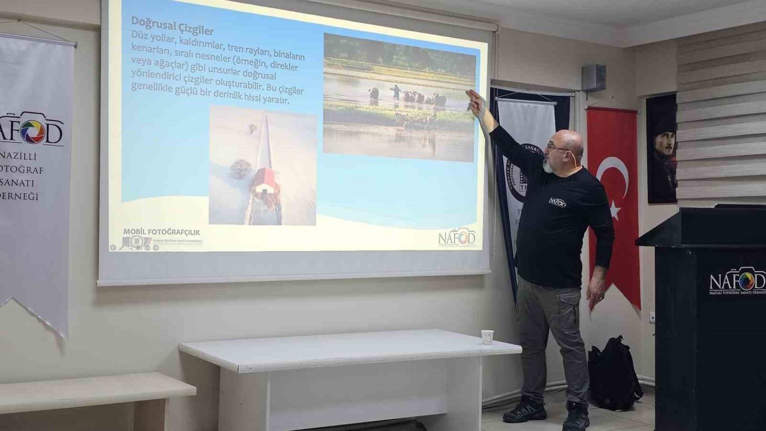 NAFOD ve Aydın Fotoğraf Sanatı Derneği (AYFOD) işbirliğinde Nazilli’deki dernek hizmet binasında düzenlenen etkinliğe çok sayıda fotoğraf tutkunu katıldı. NAFOD Yönetim Kurulu Üyesi, Fotoğraf Eğitmeni Kamil Okyay, eğitim seminerine katılan üyeler başta olmak üzere öğrenci ve diğer fotoğraf meraklılarına mobil fotoğrafçılığın temellerini anlattı. Mobil fotoğrafçılığın temelleri, renk uyumu ve kontrast, mobil fotoğrafçılıkta bakış ve hareket yönü, mobil fotoğrafçılıkta çizgiler – çerçeveler, mobil fotoğrafçılıkta kompozisyon, uygulama önerileri, ekipman ve aksesuarlar ile mobil fotoğraf uygulamalarını anlattı. 30 gün sürecek proje içerisinde teorik uygulamanın ardından saha çalışması yapılarak, cep telefonu kameraları ile çekilen fotoğrafların değerlendirmeye alınacağı belirtildi. Okyay sunumunda, cep telefonlarının işleyiş açısından fotoğraf makinelerine pek çok konuda benzese de dikkat edilmesi gereken farklılıklar olduğunun önemle altını çizerek, “Tarihteki ilk mobil fotoğraf 1997 yılında Philippe Kahn tarafından çekilmiştir. Mobil fotoğrafçılığı gelişmesi ve yayılması ancak 2002 yıllarında cep telefonlarının yaygınlaşması ile mümkün olmuştur. Mobil fotoğrafçılıkta fark oluşturan en önemli unsurlardan biri, kameranın kalbi sayılan görüntü sensörü ve onun sihirli rakamları olan boyutu ve çözünürlüğüdür. Işığı algılayan ve onu dijital verilere dönüştüren bu minik parça, fotoğrafın kalitesini doğrudan etkiler. Sensör boyutu ne kadar büyükse, o kadar fazla ışık toplayabilir. Profesyonel fotoğraf makinelerinde bulunan tam kare (Full Frame) sensörler, 36×24 mm gibi büyük boyutlara sahiptir. Oysa mobil telefonlardaki sensörler çok daha küçüktür” dedi.
