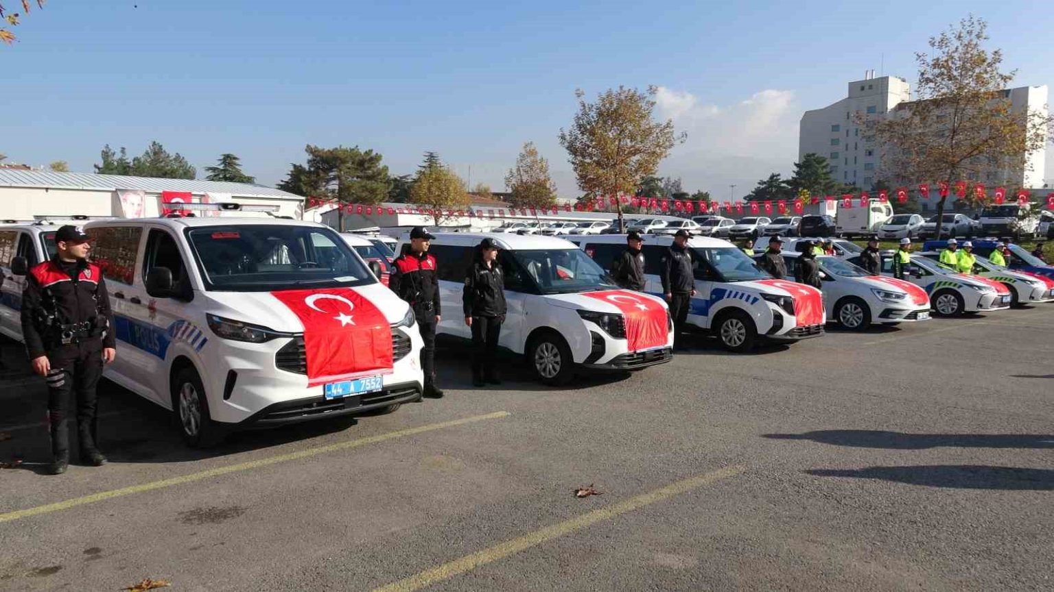 Malatya’da İl Emniyet Müdürlüğü ve İl Jandarma Komutanlığına tahsis edilen 67 yeni araç, düzenlenen törenle hizmete alındı.