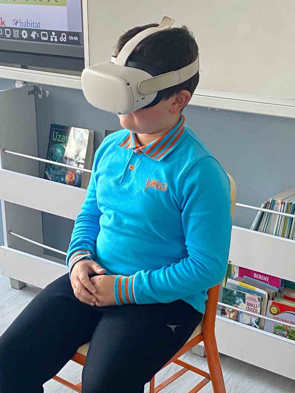 Geleceğin bilim insanları ve yazılımcıları olma yolunda ilerleyen öğrenciler; bilgiyi sadece teoride bırakmayıp, hayatın içine entegre eden ’Harezmi Eğitim Modeli’ ışığında zengin bir etkinlikle buluştu. Disiplinler arası bir yaklaşımın benimsendiği etkinlikte fen, bilişim ve etik değerler harmanlanarak çocukların problem çözme yetenekleri ve merak duyguları tetiklendi. Günün ilk durağında ’Bilim Yolu: Bitkiler Dünyasına Yolculuk’ projesi kapsamında Habitat Derneği eğitmenleriyle bir araya gelen 3/F sınıfının minik araştırmacıları, Habitat Kavramını ve Bitki Ekolojisi’ni derinlemesine inceledi. Doğayı koruma bilincinin aşılandığı bu bölümde, öğrencilerin bilimsel merakı hazırlanan interaktif sunumlarla tazelendi. Etkinliğin en dikkat çekici anları ise, teknoloji atölyesinde yaşandı. Yapay zeka (AI) kavramının temellerini öğrenen öğrenciler, teorik bilgileri sanal gerçeklik (VR) gözlüklerle deneyimleme fırsatı buldu. Öğrenciler sanal dünyada yaptıkları yolculukla teknolojinin sadece bir eğlence aracı değil, bir üretim sahası olduğunu keşfettiler.