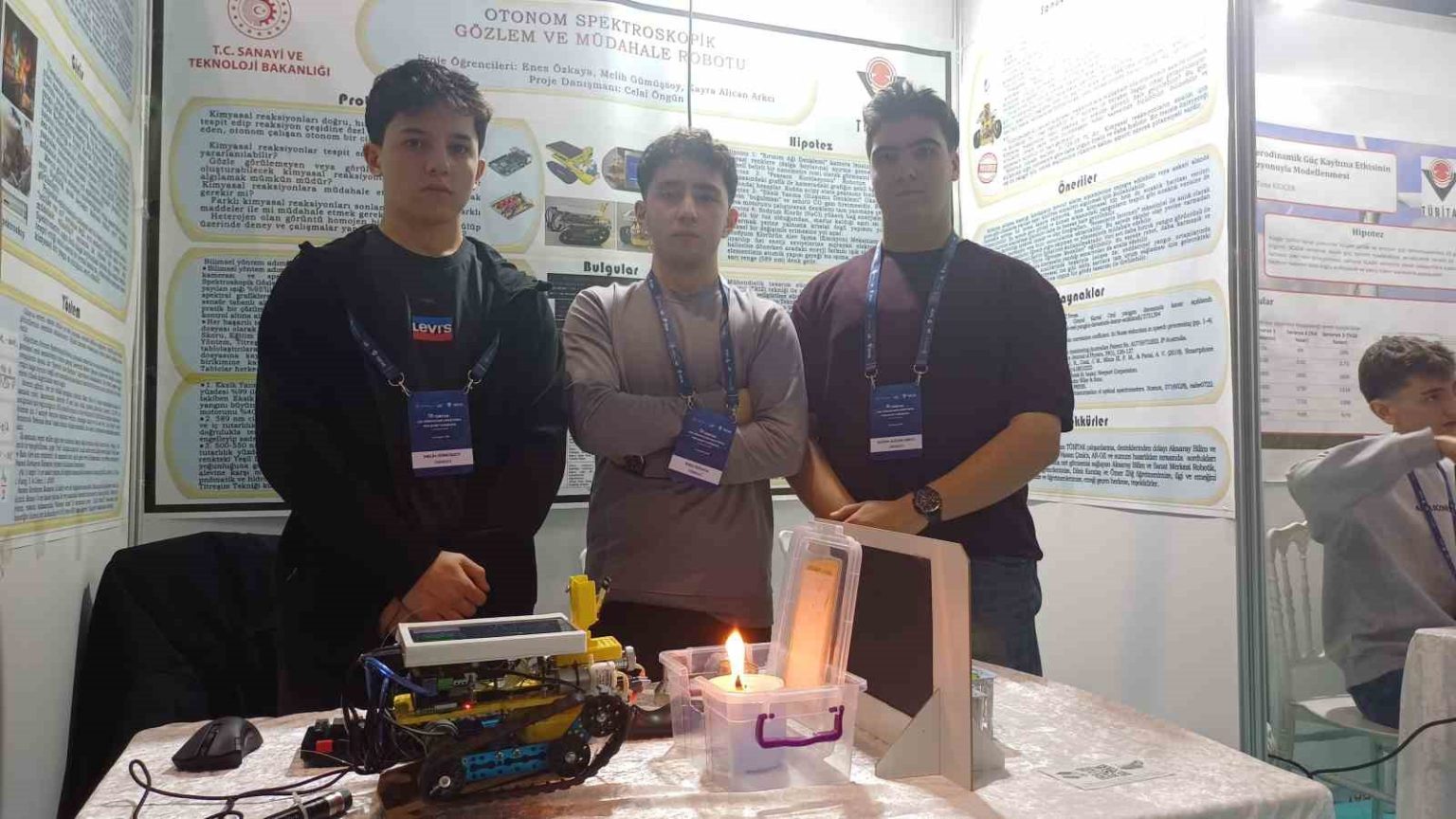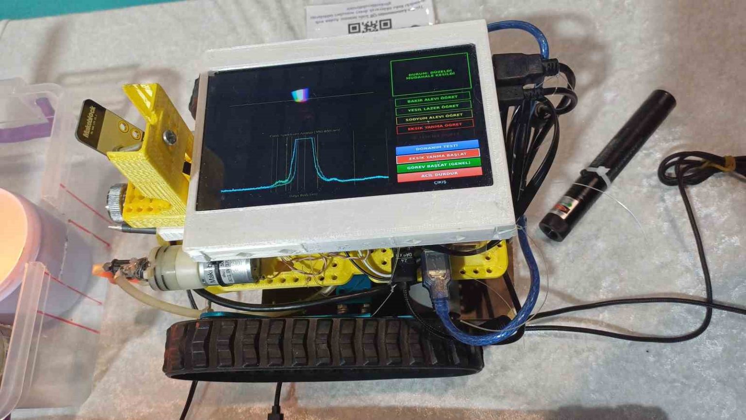 Kayseri’de lise öğrencilerinin yarıştığı 57. TÜBİTAK Lise Öğrencileri Araştırma Projeleri Yarışması’na katılan öğrencilerin geliştirdiği Otonom Spektroskopik Gözlem ve Müdahale Robotu, yangını otonom olarak tespit ederek sınıfına göre söndürme müdahalesi uygulanmasını sağlıyor.