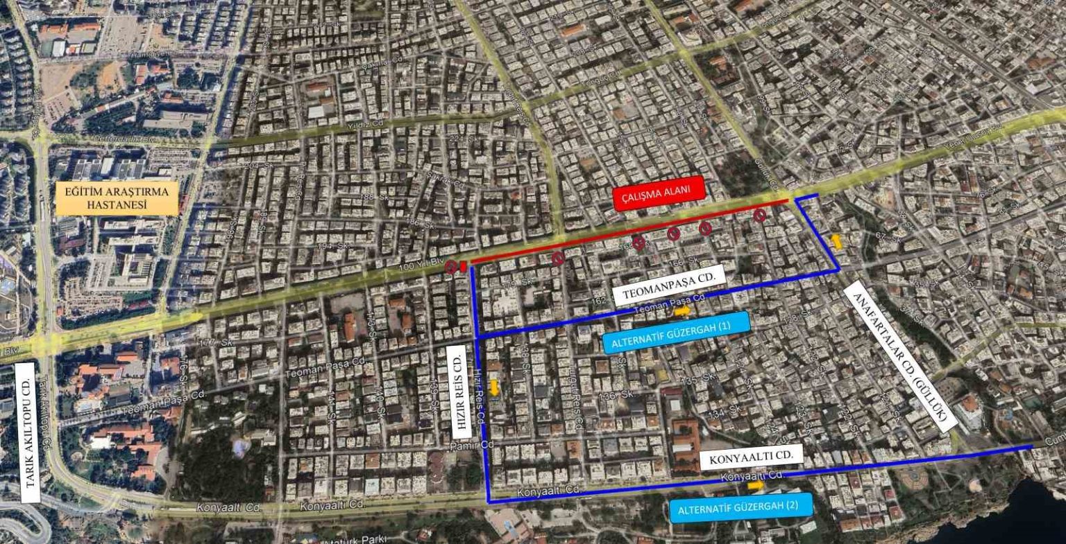 Büyükşehir Belediyesi Fen İşleri Dairesi Başkanlığı’nın 100. Yıl Bulvarı’nda bir süreden beri sürdürdüğü asfalt çalışması etaplar halinde devam ediyor. Çalışma kapsamında 100. Yıl Bulvarı’nın Konyaaltı istikametinden şehir merkezi yönüne gidiş bölümünde, Hızır Reis Caddesi ile Anafartalar Caddesi (Güllük Kavşağı) arasında kalan yaklaşık 730 metrelik bölümde asfalt çalışması yapılacak. Çalışma kapsamında bu güzergâh 8 Mart Pazar günü saat 07.00 itibarıyla araç trafiğine kapatılacak. Yoğun bir çalışma programı uygulanarak yolun 9 Mart Pazartesi günü sabah saat 06.00’da yeniden trafiğe açılması planlanıyor. Sürücülerin çalışma süresince alternatif güzergâhları tercih etmeleri istendi.