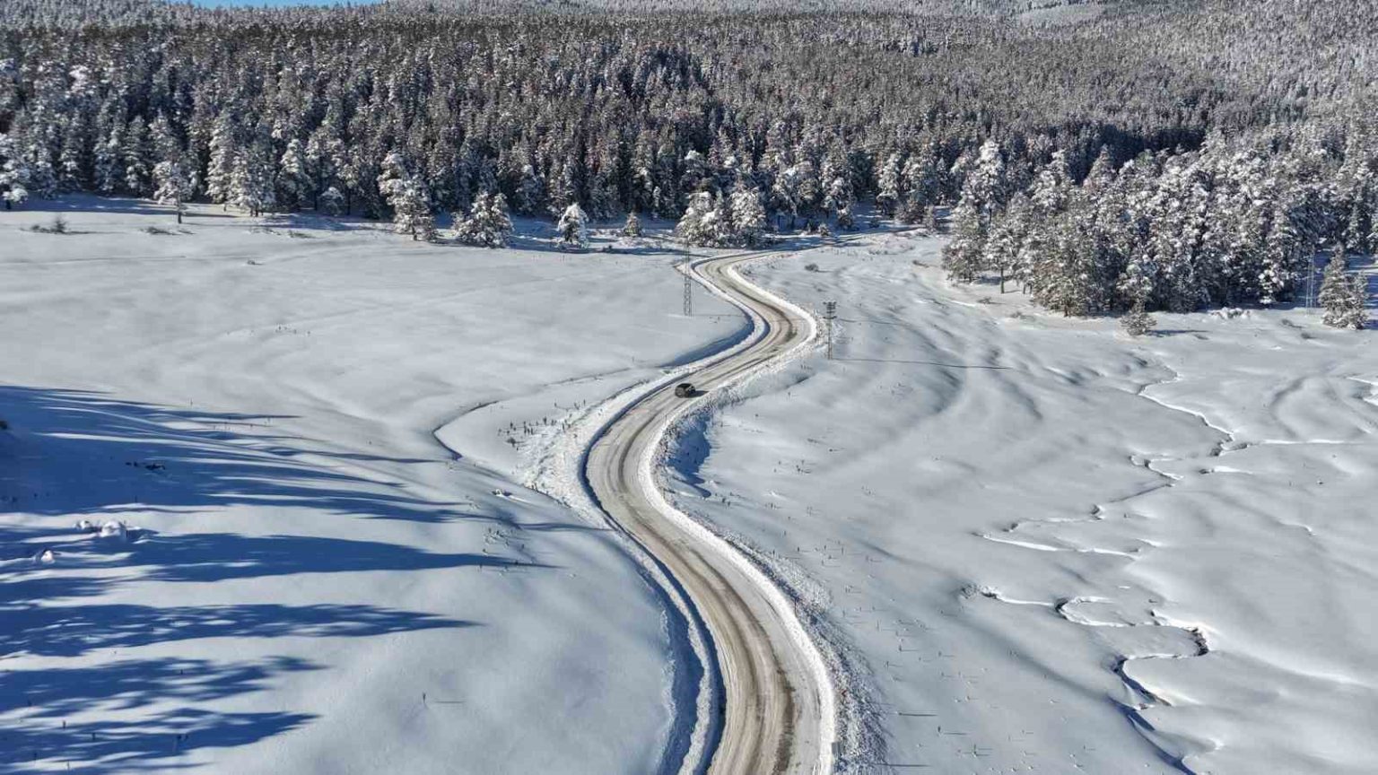 Bolu kent merkezine yaklaşık 20 kilometre mesafede konumlanan bölge, kar yağışının ardından eşsiz bir güzelliğe büründü. Bolu’nun güneydoğusunda yer alan Sarıalan, bünyesinde barındırdığı 14 farklı köy yaylası ile geniş bir alana yayılıyor. Çam ormanları arasındaki konumu ve düz yapısıyla özellikle kampçılar ve doğa tutkunları için benzersiz bir rota sunan yayla, sessizliği ve temiz havasıyla dikkat çekiyor. Kış mevsiminin etkisini göstermesiyle beyaza bürünen yayla evleri ve çam ağaçları, kartpostallık görüntüler oluşturdu. Bölgede yaşanan kış güzelliği havadan dron ile görüntülendi.