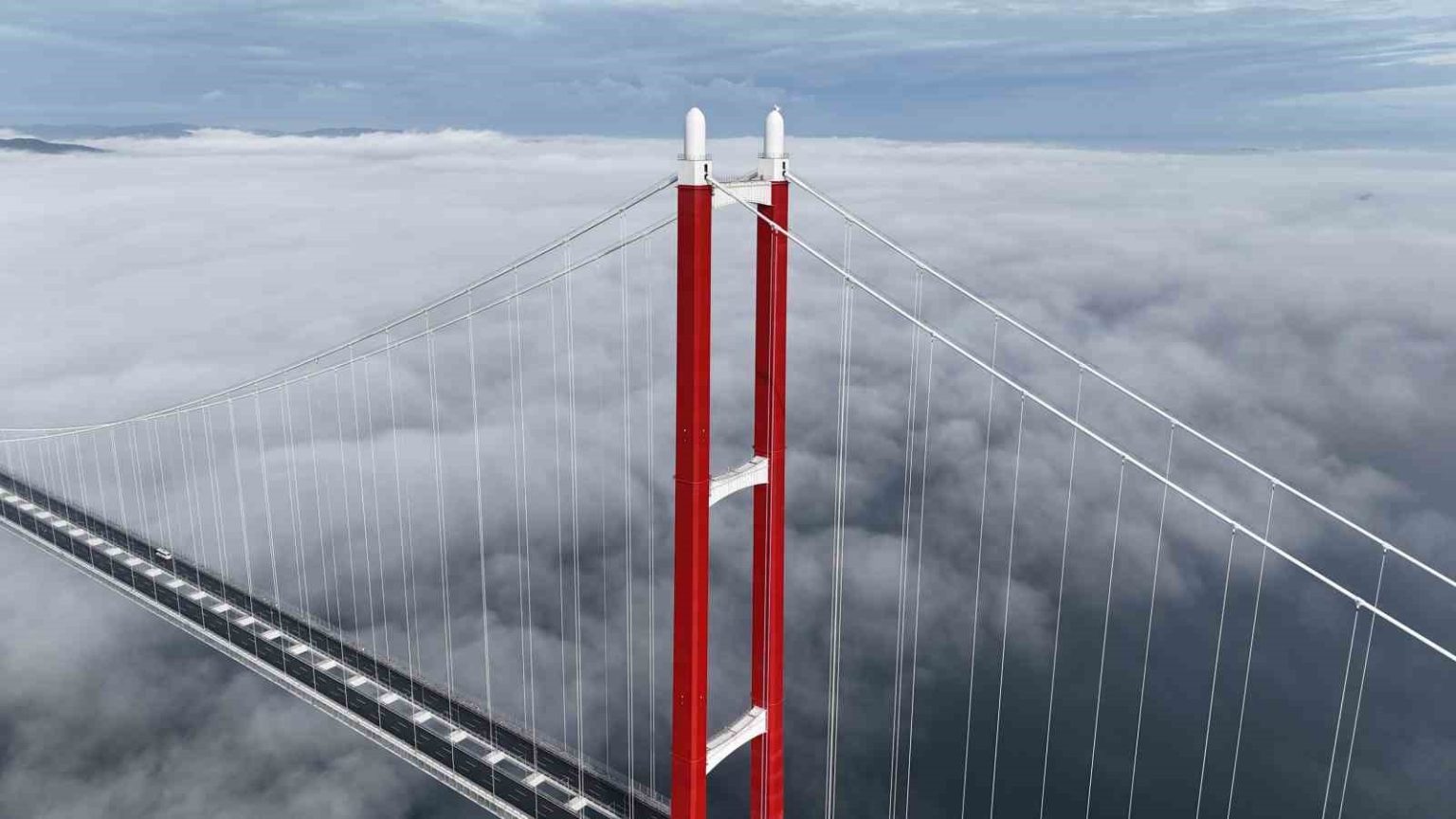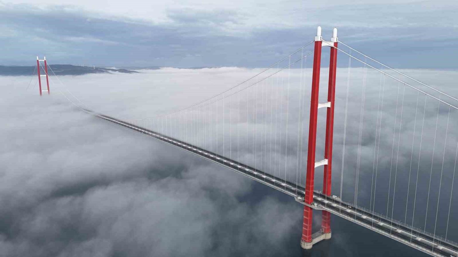 Çanakkale Boğazı’nda etkili olan sis bulutu geçişi sırasında dron ile görüntülenen 2023 metre orta açıklığıyla dünyanın en uzun orta açıklığa sahip asma köprüsü olan 1915 Çanakkale Köprüsü görüntüsüyle mest etti.