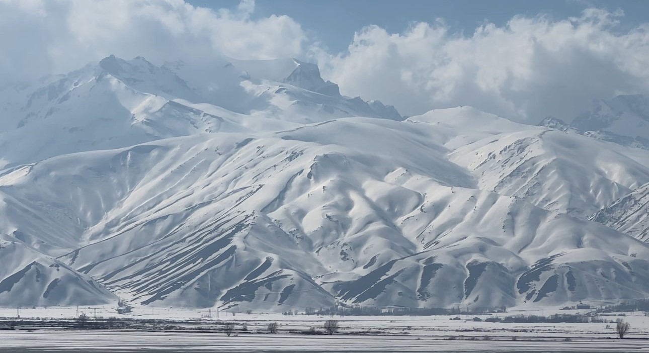 Yüksek kesimlerde kar kalınlığının yer yer 3 metreyi bulduğu bölgede, iki yerleşim yeri arasındaki iklim farkı havadan görüntülendi.