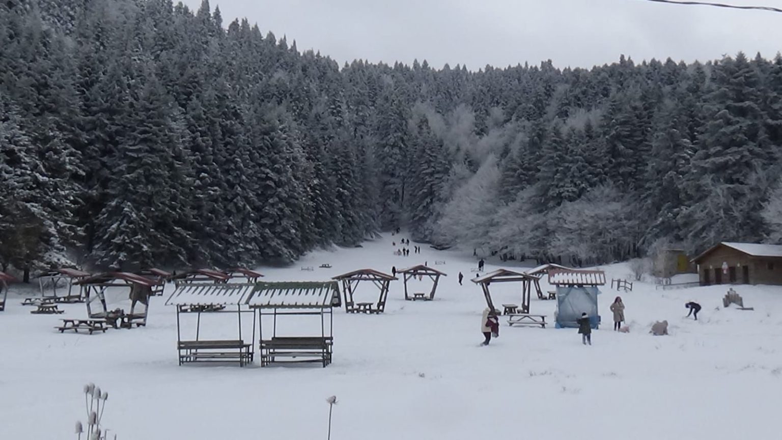 Bolu’nun doğal güzellikleriyle ünlü Abant Gölü Milli Parkı, kar yağışının ardından tamamen beyaza büründü. Hafta sonu tatilini fırsat bilen yerli ve yabancı turistler milli parka akın ederken, yanlarında getirdikleri şambrel ve poşetlerle kayarak karın tadını çıkardı.
