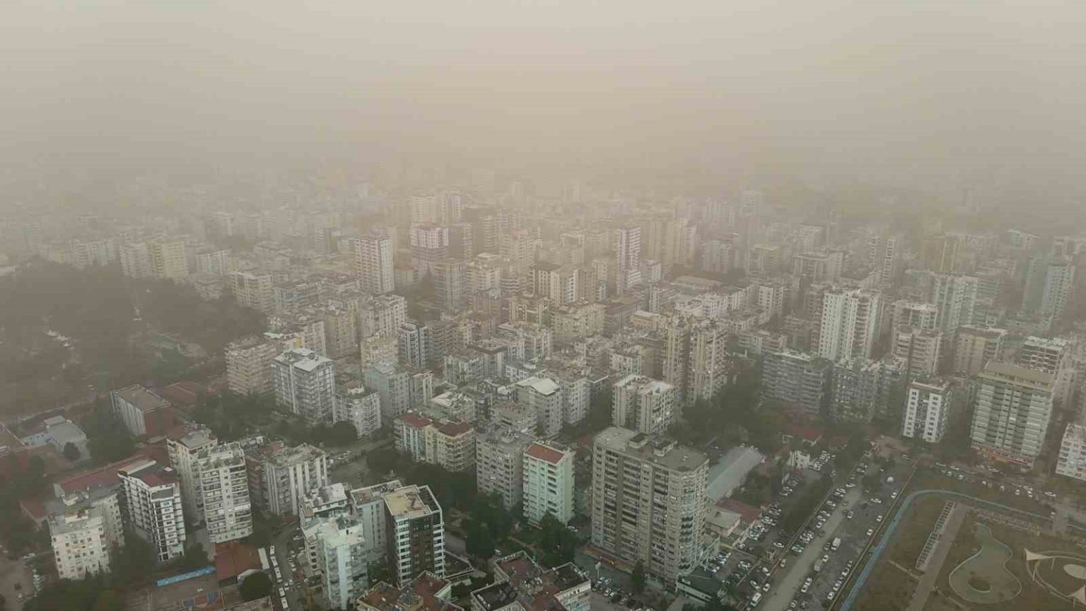 Libya üzerinden kuvvetli rüzgarla birlikte Türkiye’ye giriş yapan toz fırtınası Adana’da etkili oldu. Toz fırtınası, dron ile görüntülendi.