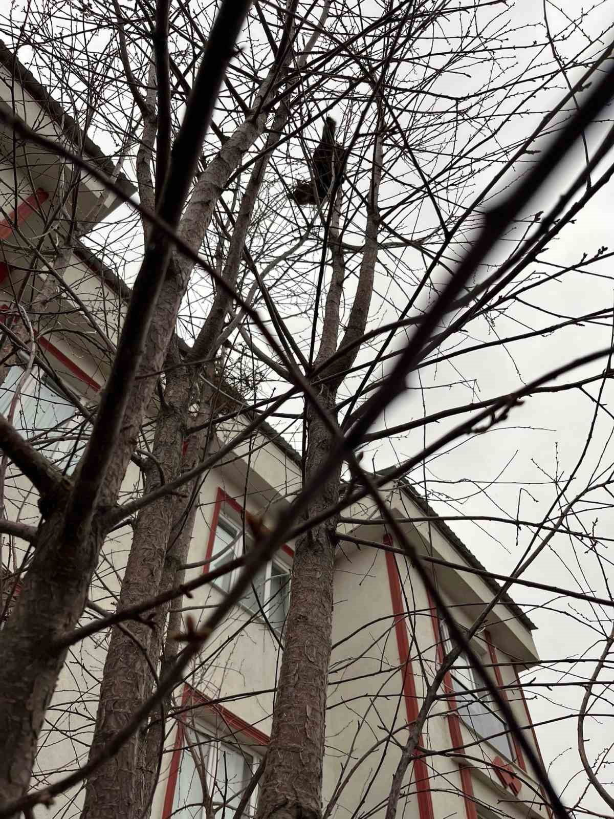 Erzurum’un Aziziye ilçesinde ağaca çıkarak mahsur kalan kedi, zabıta ekiplerinin müdahalesiyle sağ salim kurtarıldı.