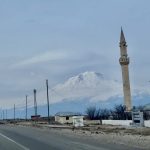 Yol boyunca sürücülere manzarasıyla eşlik eden Ağrı Dağı, bölgedeki tepelerin arasında ihtişamıyla yükseliyor.