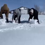 Ağrı’da kar yağdı, çocuklar doyasıya eğlendi