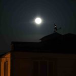 Bitlis’in Ahlat ilçesinde gün batımının ardından gökyüzünde beliren dolunay, izleyenlere adeta görsel bir şölen yaşattı.