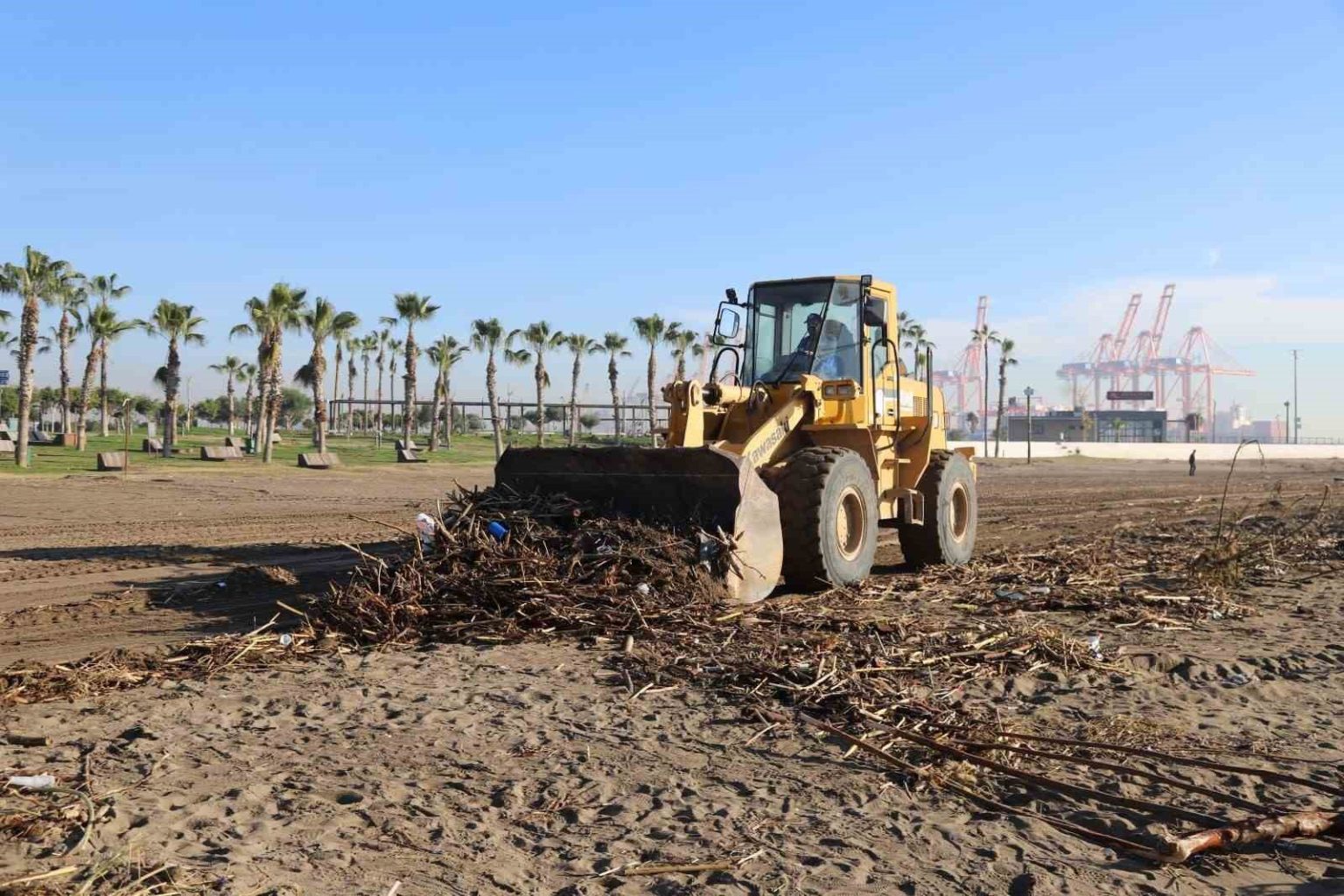 Selin ilk gününden itibaren sahada aktif görev alan belediye ekipleri, Mersin Millet Bahçesi sahilinde kapsamlı temizlik çalışması başlattı. Sel sularıyla birlikte sahil şeridine sürüklenen odun parçaları, balçık ve çeşitli atıklar; Akdeniz Belediyesi Park ve Bahçeler Müdürlüğü ile Fen İşleri Müdürlüğü ekipleri tarafından temizleniyor. Çalışmalara 12 kamyon, 3 traktör, 1 kepçe ve 1 kazıcı-yükleyici destek veriyor. Sabahın erken saatlerinde sahil bölgesine intikal eden ekipler, iş makineleri yardımıyla biriken atıkları toplayarak belirlenen alanlarda bir araya getiriyor. Toplanan atıklar daha sonra kamyonlarla bertaraf merkezine taşınıyor.