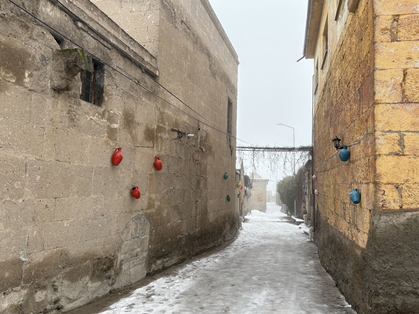Aksaray’ın yüksek kesimlerinde etkili olan kar yağışı 2 gündür devam ederken, tarihi mekanlarıyla yerli ve yabancı turistlerin ilgi odağı olan Güzelyurt ilçesi de beyaza büründü.