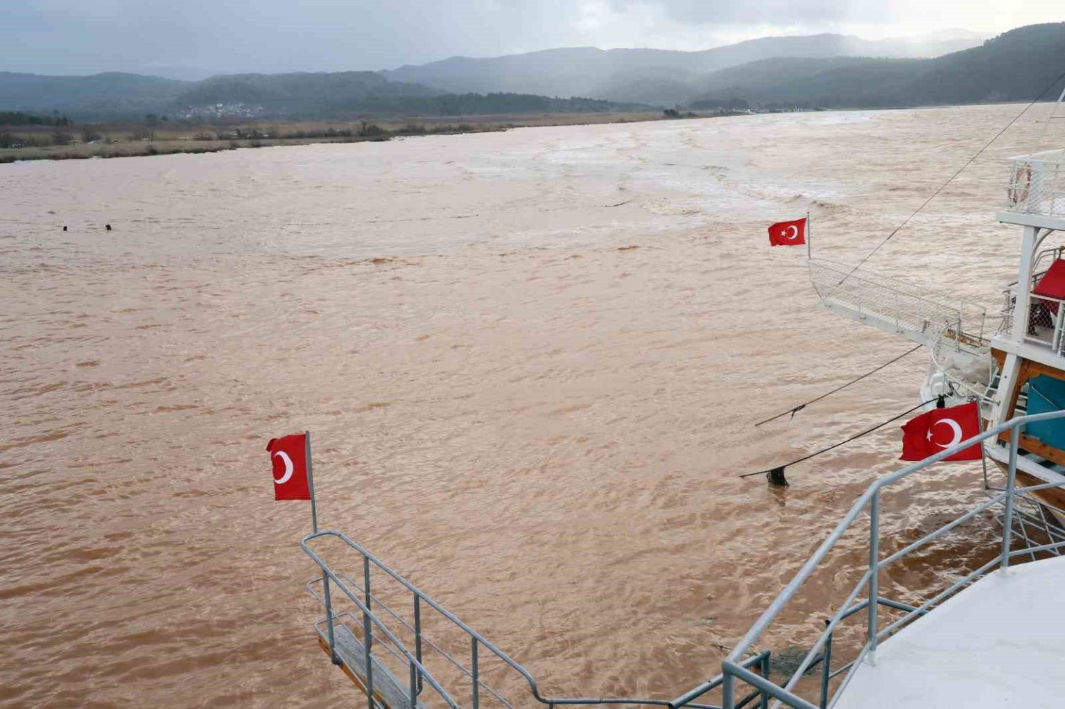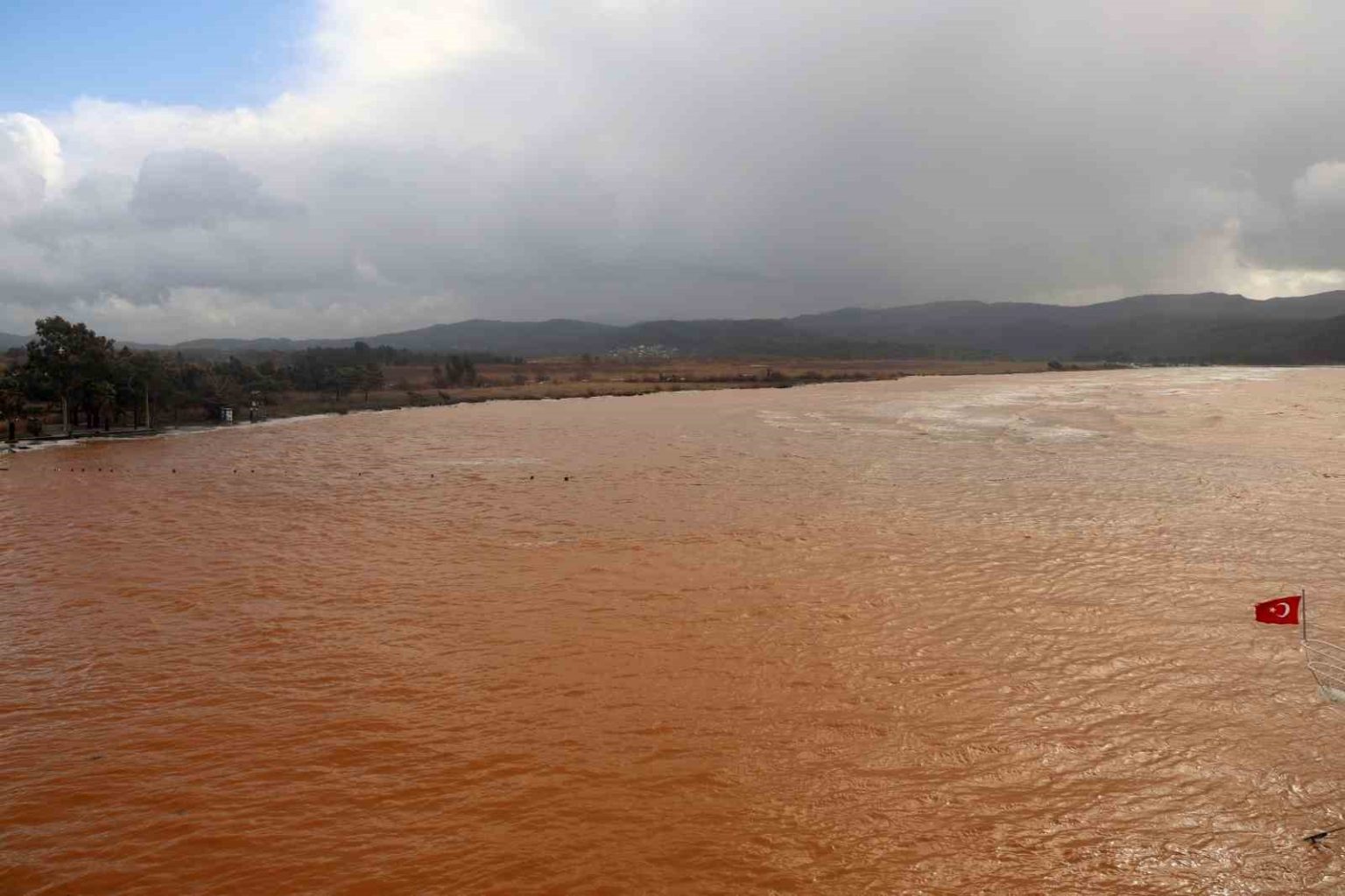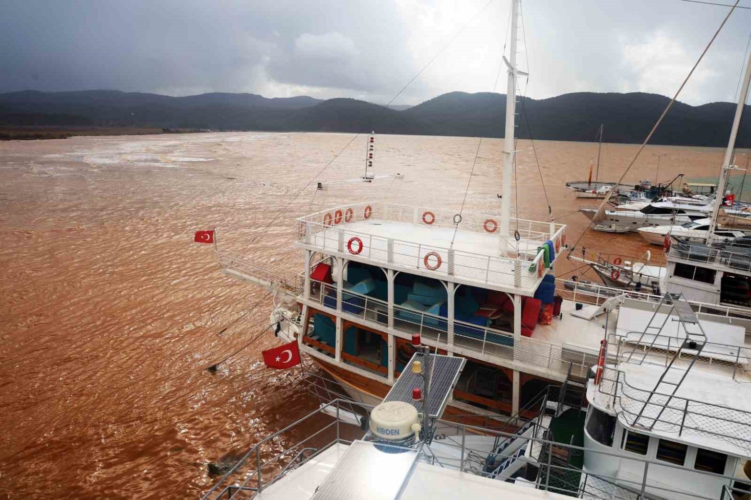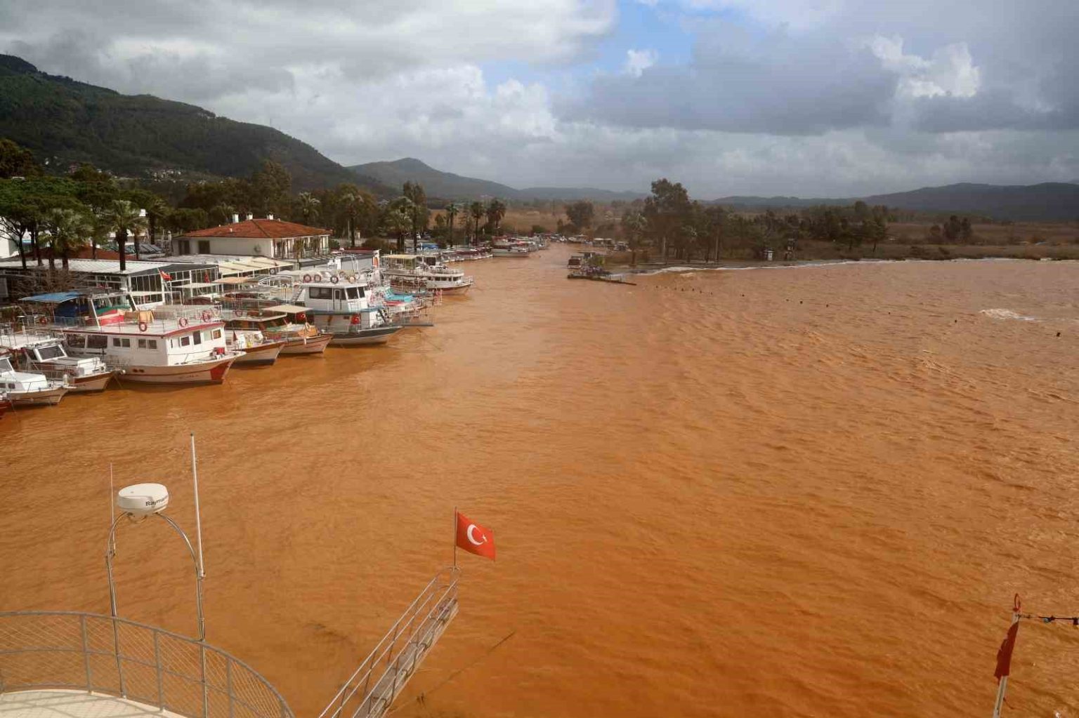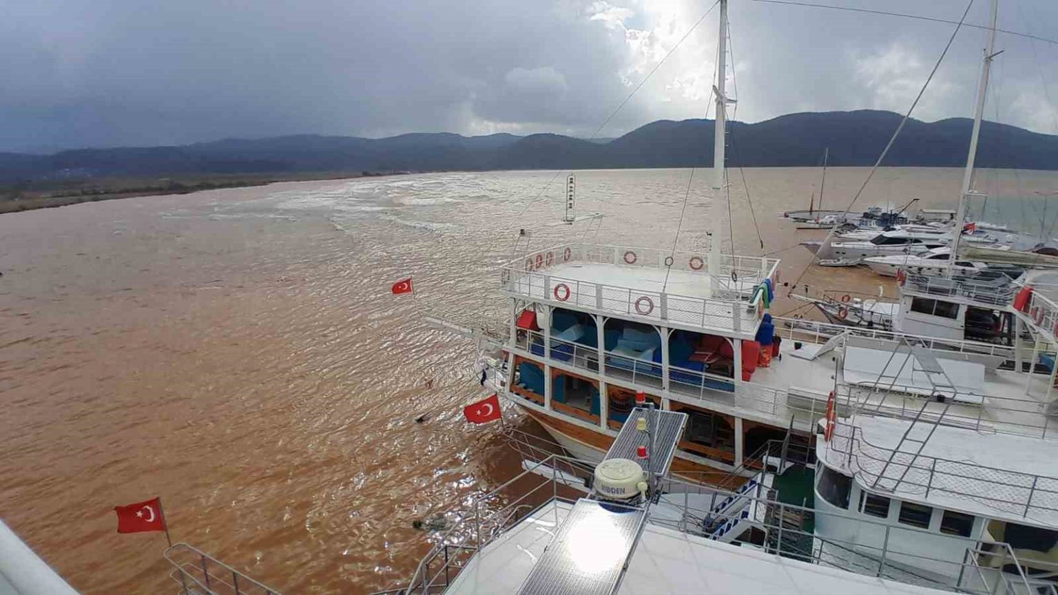 Muğla’da etkili olan sağanak yağış ve fırtına sonrası, ’Sakin Kent’ ünvanına sahip dünyaca ünlü Ula’nın Akyaka Mahallesi’nde denizin rengi kahverengiye döndü.