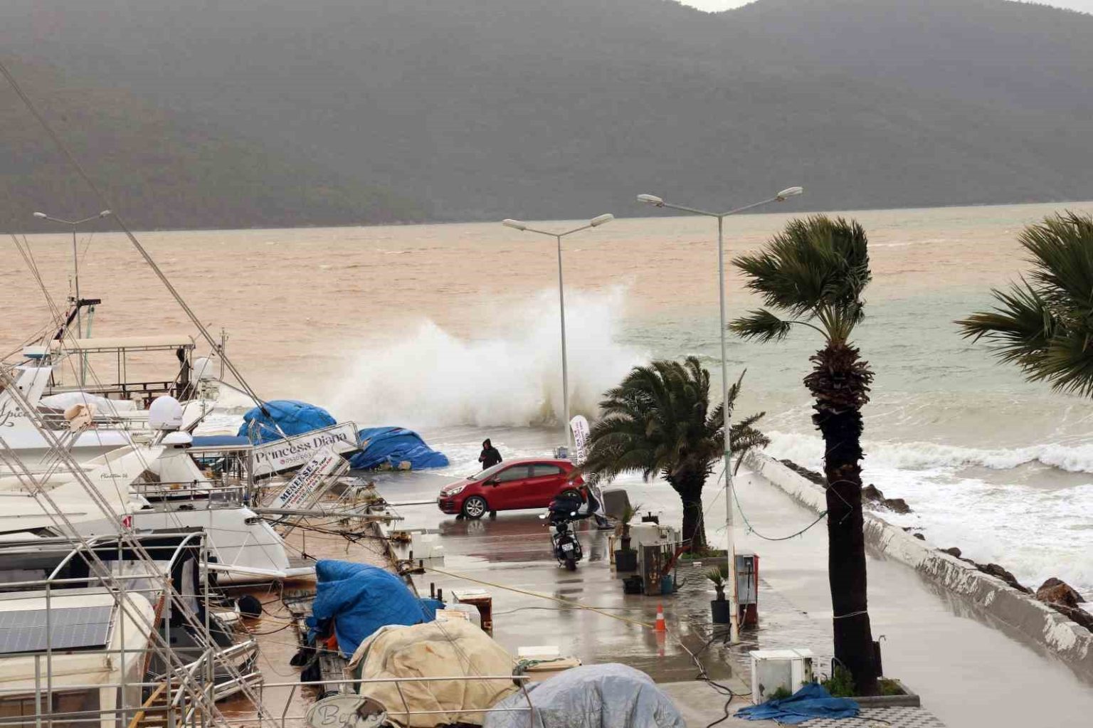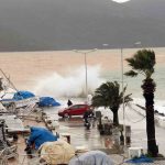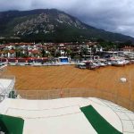 Muğla genelinde etkisini sürdüren sağanak yağış ve fırtına, Akyaka ve Gökçe Sahili’nde dağlardan gelen çamurlu suların denize karışmasıyla birlikte mavi renge sahip deniz suyu kahverengiye döndü. Fırtına nedeniyle oluşan dalgalar ise mendirek ve Akyaka Sahili’nde deniz seviyesinin yükselmesine yol açtı.