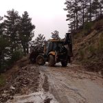 Antalya Büyükşehir Belediyesi ekipleri, olumsuz hava şartlarının etkisini sürdürdüğü Alanya kırsalında yolları açık tutmak için çalışıyor.