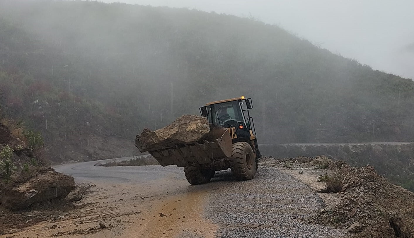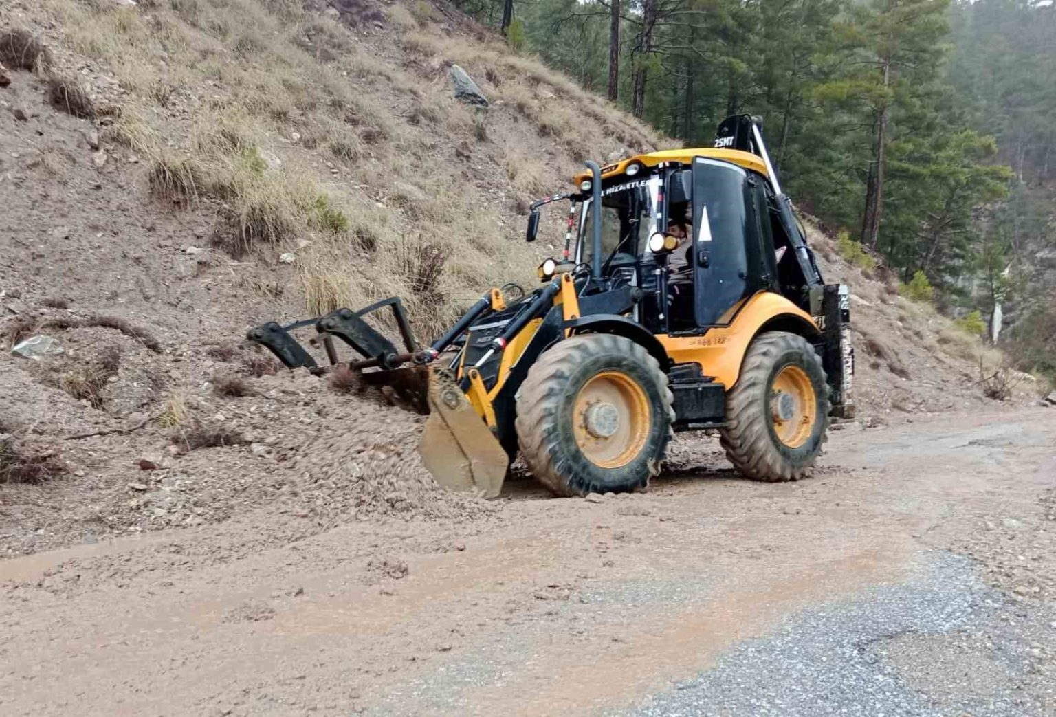 Antalya Büyükşehir Belediyesi ekipleri, olumsuz hava şartlarının etkisini sürdürdüğü Alanya kırsalında yolları açık tutmak için çalışıyor.