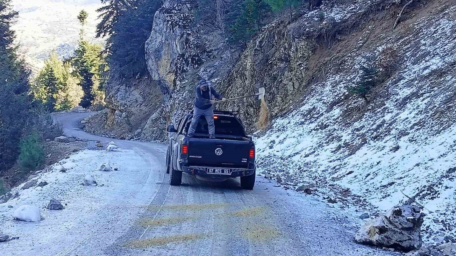 Antalya Büyükşehir Belediyesi Yol Yapım Bakım ve Onarım Dairesi Başkanlığı Alanya ekipleri, Alanya’nın kırsal mahalle yollarında güvenli ulaşım için yoğun bir şekilde çalışıyor. Farklı noktalarında göçük ve heyelan nedeniyle bozulmalar olan Taşatan yolunda ekipler çalışıyor. İş makineleri ile göçük olan noktalarda taş ve toprak dolgu çalışması yapılıyor. Çalışmalar hafta boyunca devam edecek. Buzlanma olan yerlere tuzlama yapılırken, Gündoğmuş sınırları içinde bulunan Yeniköy ve Köprülü grup yolunda buzlanma olan yerlerde tuzlama çalışması yapıldı.