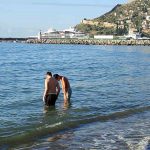 Alanya’da sabahın erken saatlerinde sahile gelen iki arkadaş, bir süre kıyıda vakit geçirdikten sonra denize girme kararı aldı. Erken saatlerinde soğuk havaya aldırış etmeyen gençler, kısa süreli yüzdü. Bir süre denizde kalan gençler, daha sonra sudan çıkarak sahilden ayrıldı.