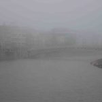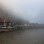 Sis nedeniyle Yeşilırmak Nehri’nin kıyısında sıralanan Yalıboyu Evleri güzel manzara oluşturdu.