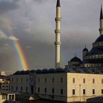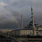 Ankara’nın simgelerinden olan Kocatepe Camii semalarında yağmur sonrası gökkuşağı oluştu.
