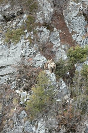 Artvin’in Şavşat ilçesinde bir anne boz ayı sırtındaki yavrusu ile dron kamerasına yakalandı.