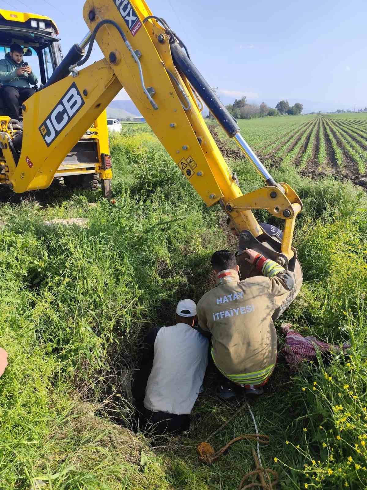 Hatay’ın Antakya ilçesinde kuyuya düşerek mahsur kalan büyükbaş hayvan, itfaiye ekiplerinin çalışmasıyla kurtarıldı.