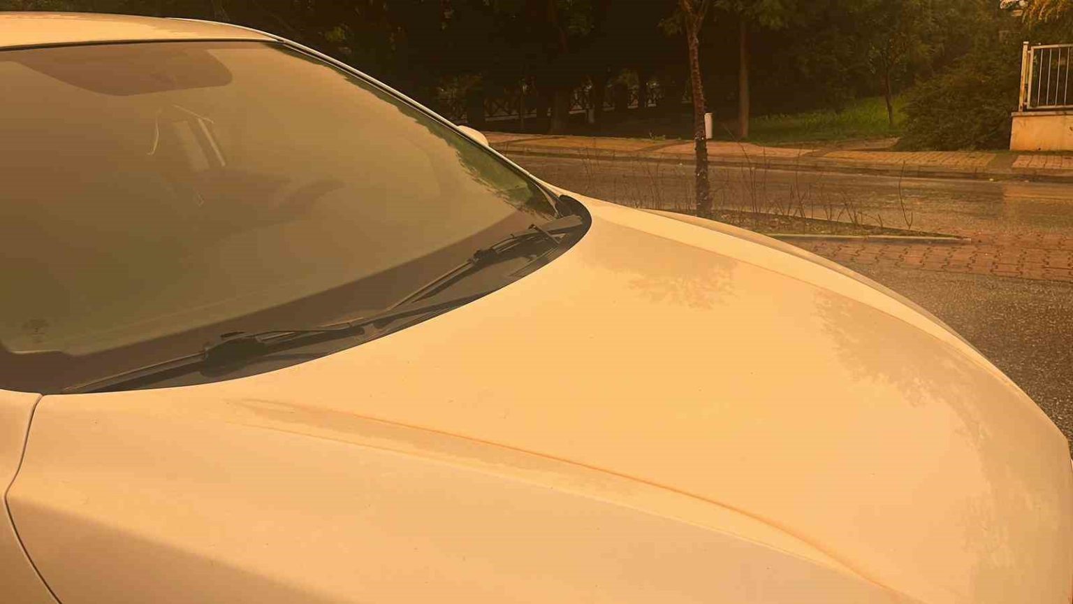Manavgat ilçesinde de, etkili olan toz taşınımı yoğunluğu yağışla birlikte araçların camlarında göze çarptı.