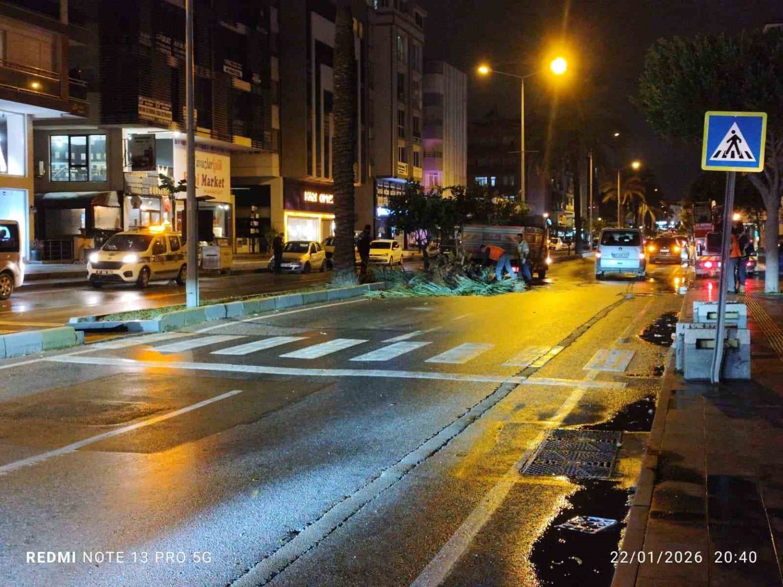 Trafik ekipleri yolda gerekli güvenlik önlemini alırken, trafik tek şeritten kontrollü olarak sağlandı. Park ve Bahçeler Müdürlüğü ekiplerinin yola savrulan palmiyeyi kesmek suretiyle kaldırmasının ardından caddede trafik akışı normale döndü. Fırtınayla birlikte zaman zaman yağmurunda şiddetini artırdığı gözlenirken, fırtınanın etkisini geç saatlere kadar sürdürmesi bekleniyor.