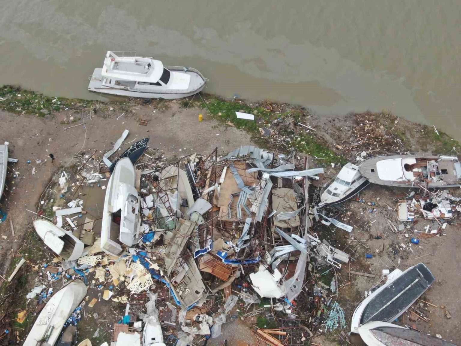 Tekneler savruldu, tersane alanı yok oldu