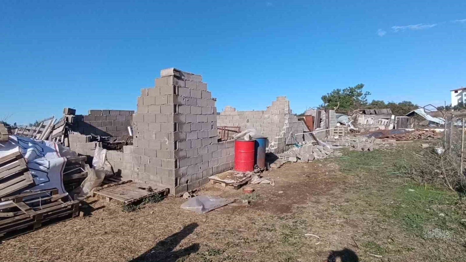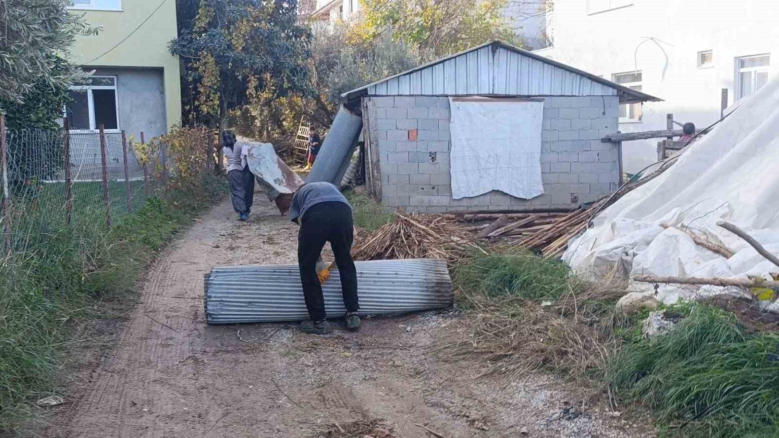 Hortumdan zarar gören vatandaşlardan bir tanesi de Adem Ünal oldu. Adem Ünal’ın evinin bahçesinde bulunan ve briketle örülü durumdaki koyun ağılı, hortumun etkisiyle yerle bir olurken, koyunlar içerisindeki yavru kuzu ayağının üzerine duvar yıkılması sonucu yaralandı.