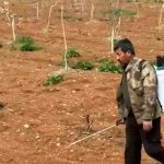 Gaziantep’in Araban ilçesinde etkili olan yağışların ardından Antep fıstığı üreticileri, 2-3 yıl önce dikilen fidanların diplerinde oluşan yabancı otlara karşı ilaçlı mücadele başlattı.