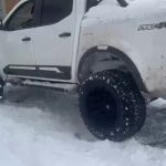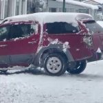 Ardahan’ın Çıldır ilçesinde yoğun kar yağışı sonrası oluşan buzlanma nedeniyle araçlar yolda kaldı.