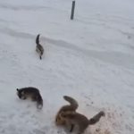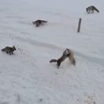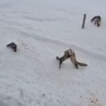 Ardahan’da tilkilerin ’ekmek kavgası’ kamerada
