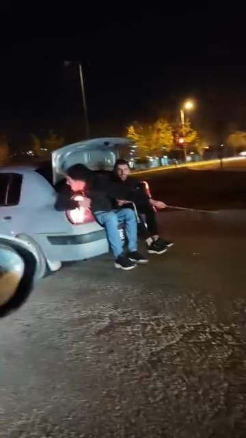Olay, merkez Sanayi Mahallesi’nde meydana geldi. Edinilen bilgiye göre, TOFAŞ Doğan marka araç arızalandı. Bunun üzerine şahsın yardımını arkadaşları koştu. Fakat yardım etme yöntemi görenleri hayrete düşürdü. Öndeki aracın bagaj kapağını açarak oturan 2 kişi iple TOFAŞ’ı çekti. Şahıslar hem kendilerini hem de trafiği tehlikeye attı. O anlar cep telefonuna kamerasına yansıdı.