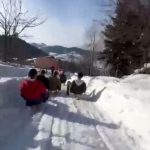 Artvin’in Şavşat ilçesi Kocabey köyünde yoğun kar yağışının ardından vatandaşlar, geleneksel tahta kızaklarla kayarak kışın keyfini doyasıya çıkardı.