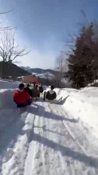Kar kalınlığının yer yer artmasıyla birlikte çocuklar, gençler ve yaşlılar geleneksel tahta kızaklarla köy yolunda kaymaya başladı. Soğuk havaya rağmen bir araya gelen vatandaşlar, uzun süre kızakla kayarak eğlenceli anlar yaşadı. Kimi zaman düşenler olsa da ortaya çıkan görüntüler izleyenleri gülümsetti.
