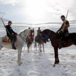 Ciritçiler, cirit müsabakaları için atlarını kar üzerinde dörtnala koşturarak ata sporu olan ciridi yaşatmaya gayret gösteriyorlar.