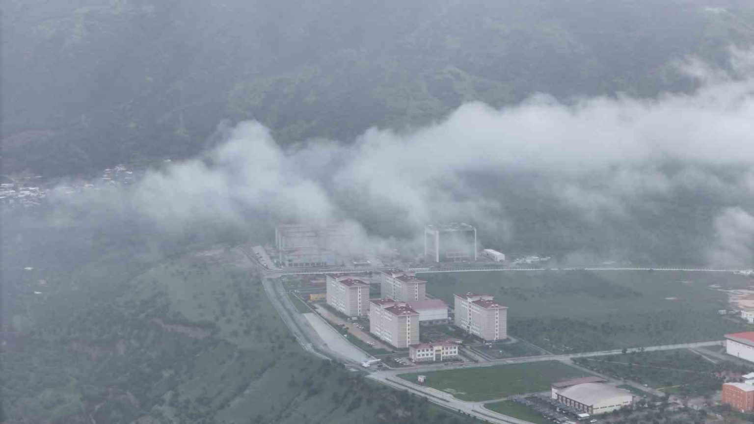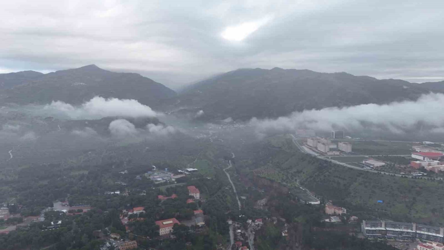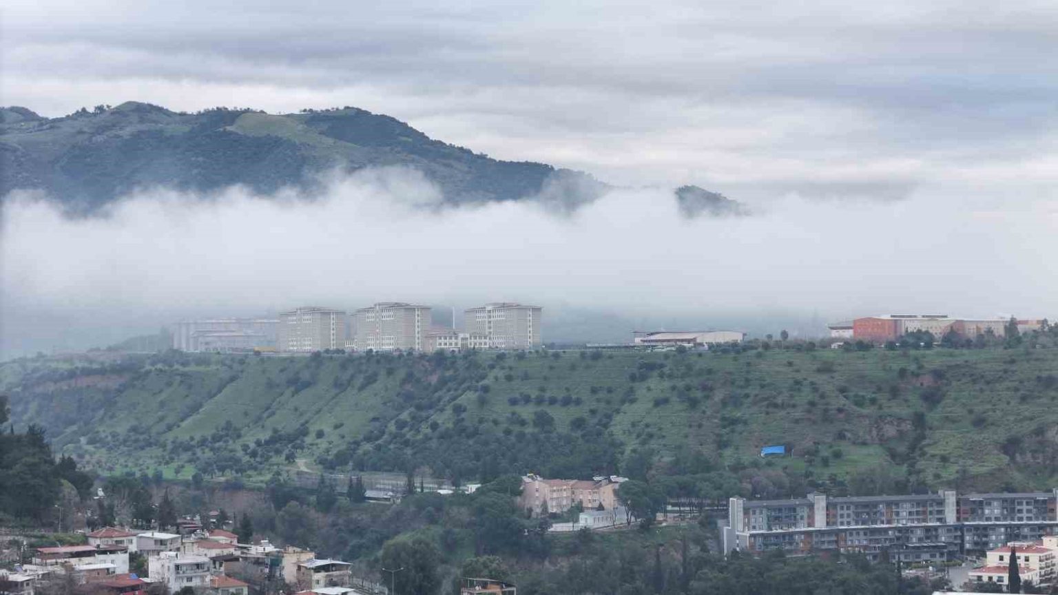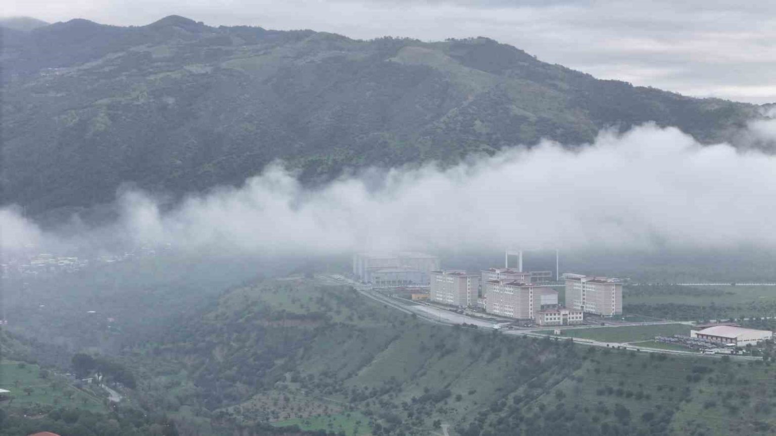 Aydın’da sabah saatlerinde dağlardan şehrin eteklerine kadar inen bulutlar, Aydın Adnan Menderes Üniversitesi (ADÜ) kampüsünü sisle kapladı. Ortaya çıkan kartpostallık görüntüler drone ile havadan görüntülendi.