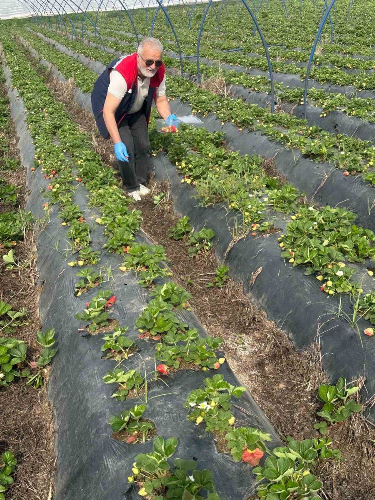 Aydın’da hasat öncesi çilek bahçeleri kontrol edildi