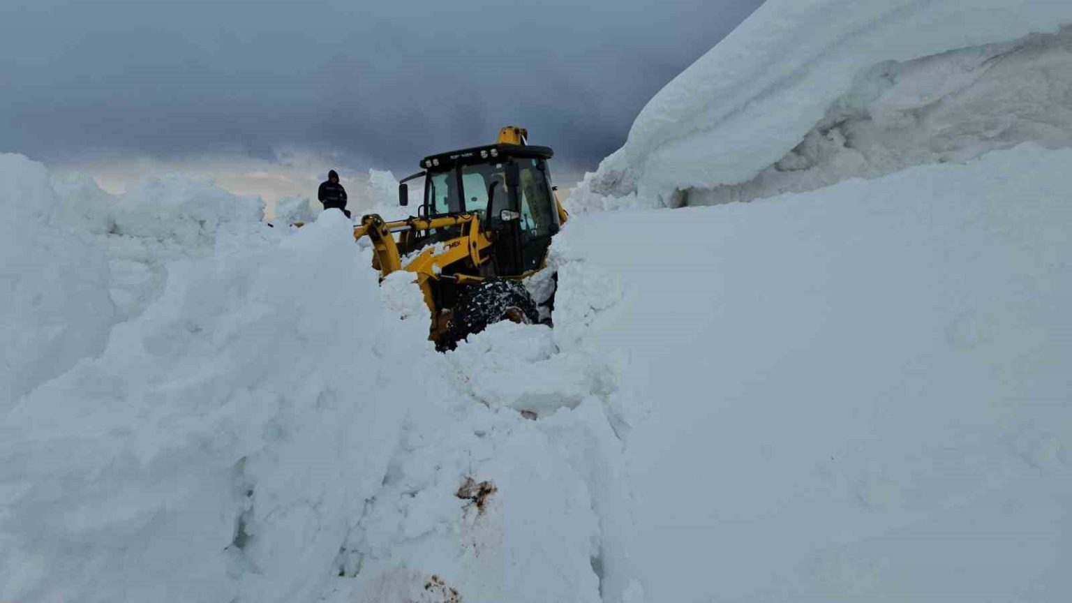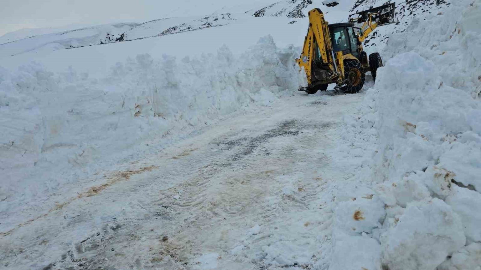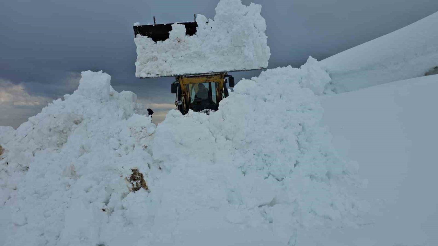 Bitlis’in Adilcevaz ilçesine bağlı Aydınlar beldesinde kar kalınlığının yer yer 3 metreyi bulduğu yollarda çalışmalar devam ediyor.