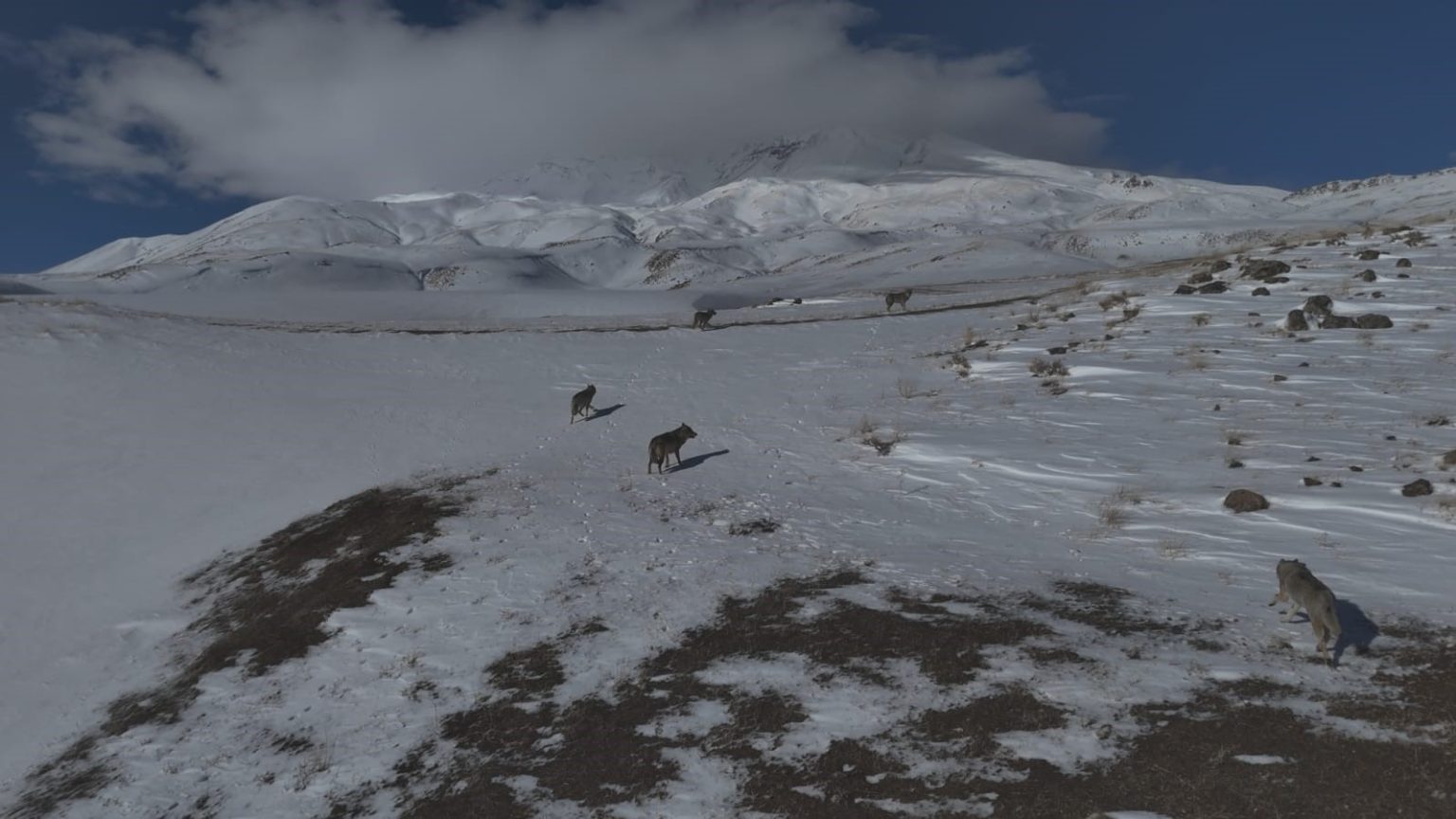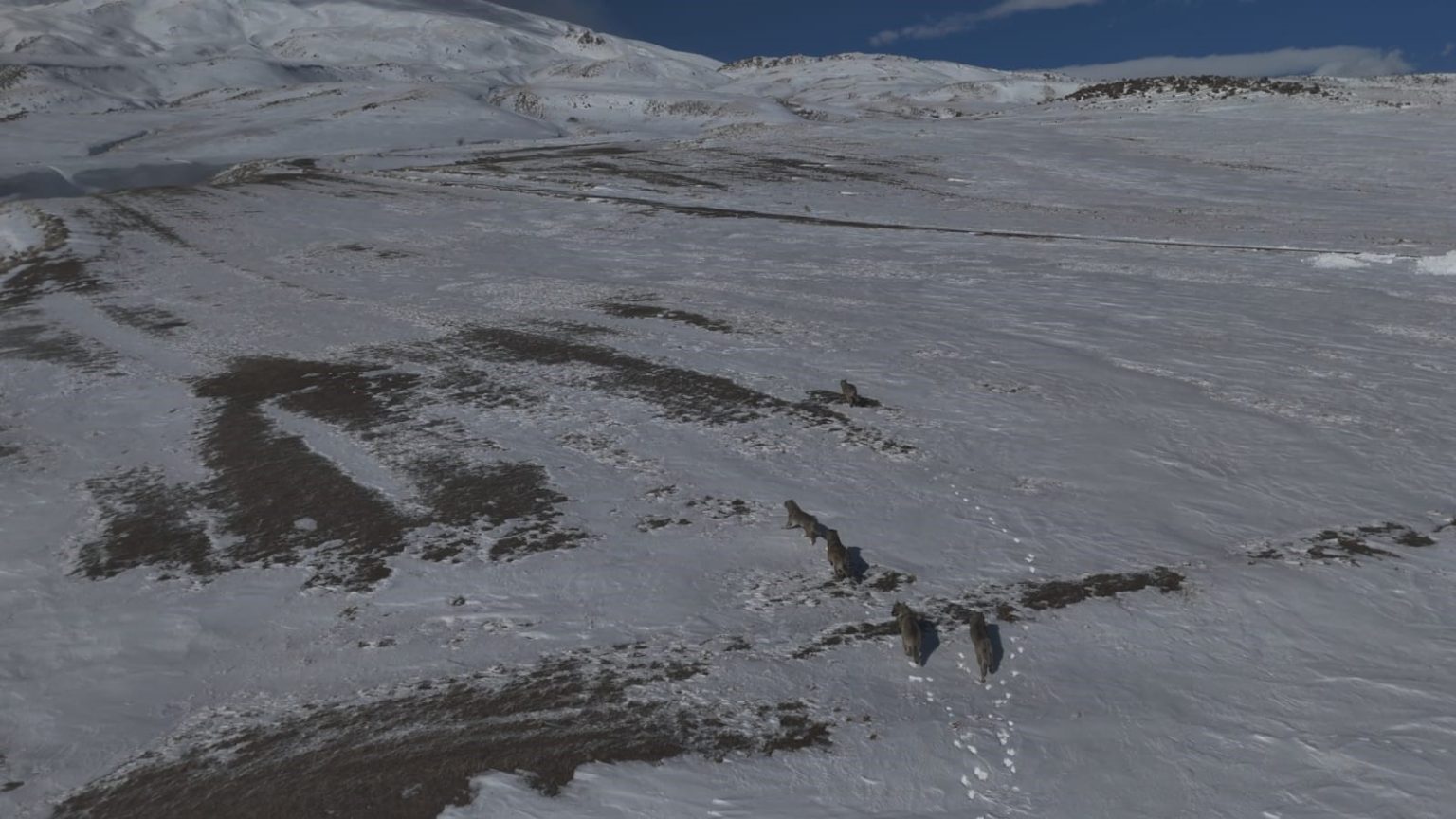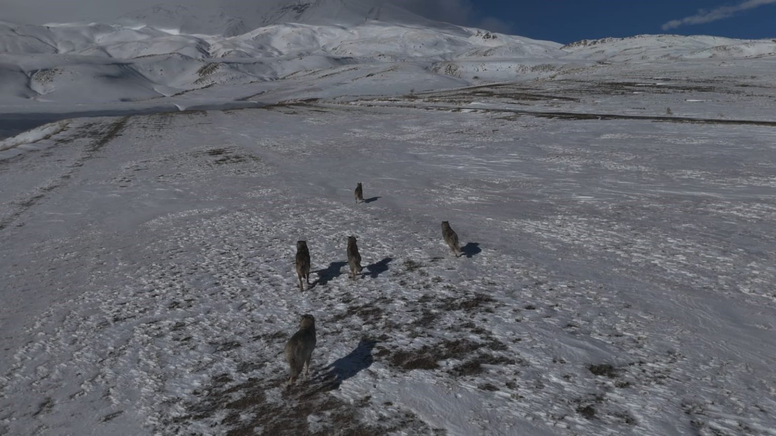 Bitlis’in Adilcevaz ilçesi Aydınlar beldesinde doğada nadir rastlanan anlardan biri dron kamerasına yansıdı. Kırsal alanda yapılan çekimler sırasında bir kurt sürüsünün birlikte hareket ettiği anlar görüntülendi.