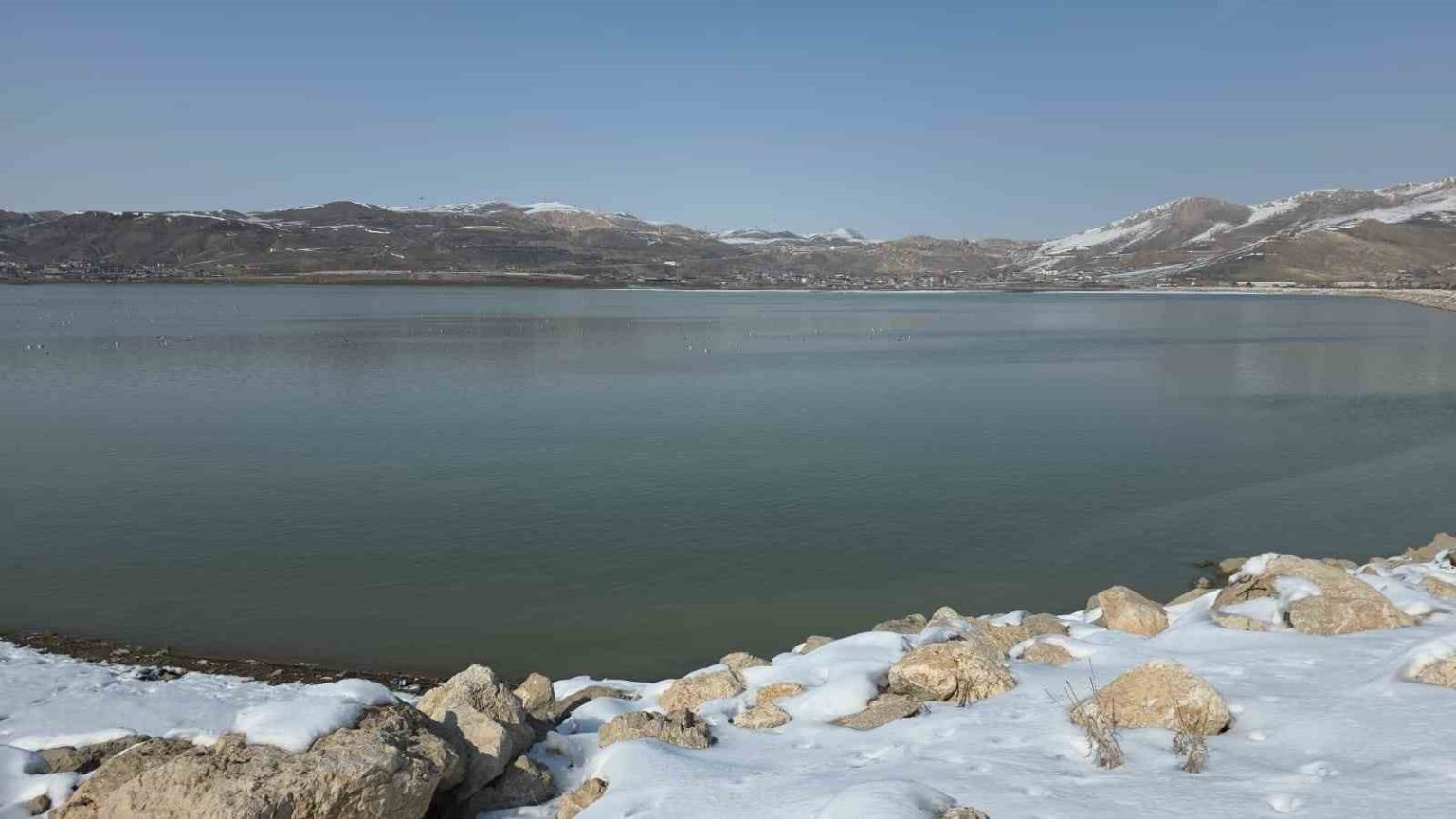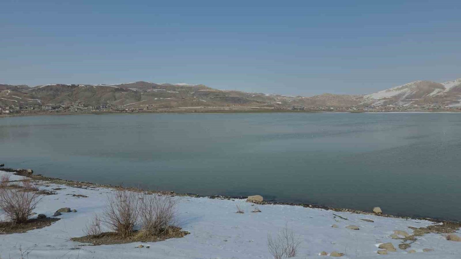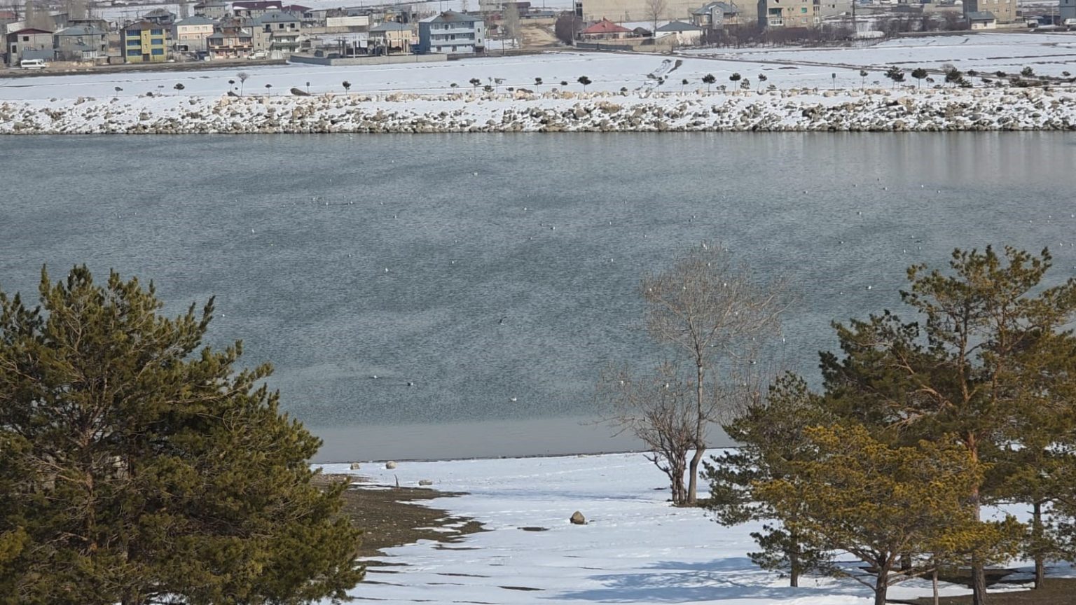 Van’da havaların ısınmasıyla birlikte kış boyunca yüzeyi donan Sıhke Göleti’nin buzları tamamen çözüldü. Günlerdir etkisini artıran sıcak hava, gölet üzerindeki kalın buz tabakasını eriterek yerini suya bıraktı.