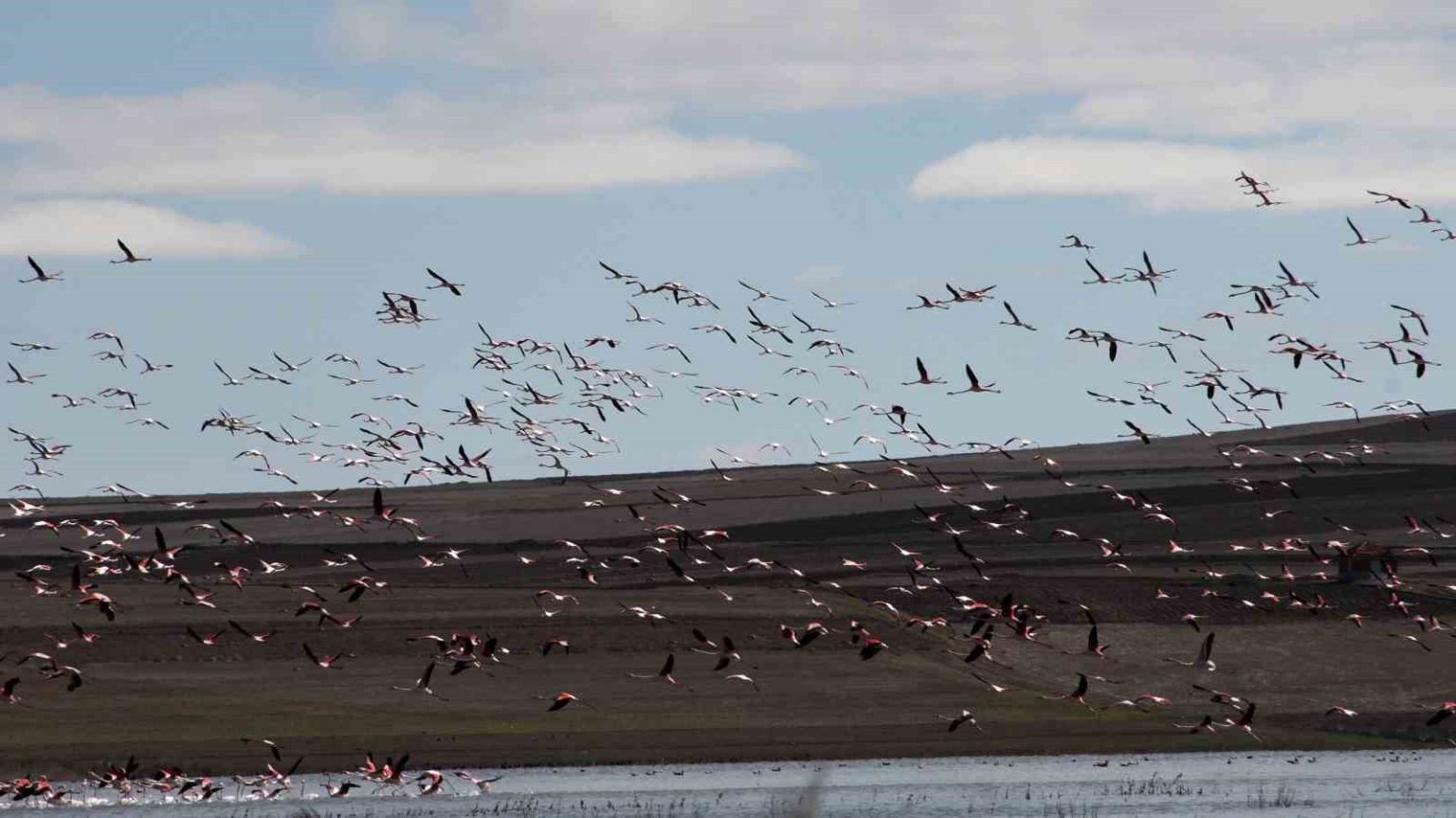Her yıl olduğu gibi bu yıl da yüzlerce flamingonun oluşturduğu manzara, Yozgat’ta baharın gelişini adeta görsel bir şölenle müjdeliyor.