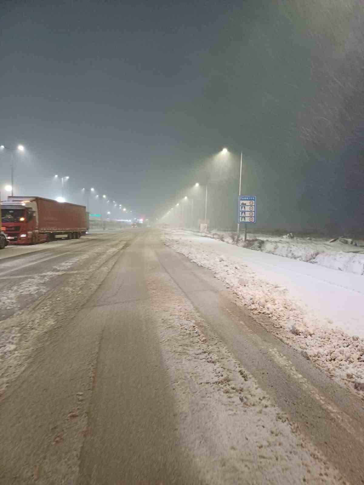 Balkanlar üzerinden gelen soğuk hava dalgasıyla birlikte kar yağışı sınır kapılarından yurda giriş yaptı. Edirne’de özellikle Hamzabeyli Sınır Kapısı’nda etkisini artıran kar yağışı sonrası ekipler harekete geçti.