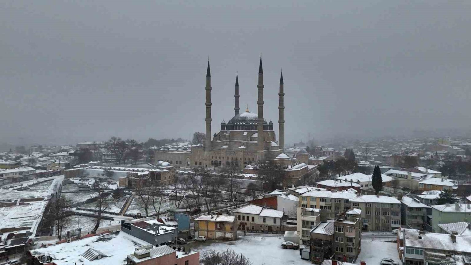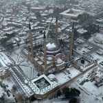 Edirne’de Balkanlar üzerinden gelen soğuk hava dalgasının etkisiyle akşam saatlerinde başlayan kar yağışı, kentte sevinçle karşılandı. Uzun süredir beklenen kar yağışı kısa sürede kenti beyaza bürüdü. Hava sıcaklığının sıfırın altına düştüğü kent merkezinde özellikle tarihi alanlar kartpostallık görüntülere sahne oldu. UNESCO Dünya Kültür Mirası Listesi’nde yer alan Selimiye Camii başta olmak üzere birçok tarihi yapı beyaz örtüyle kaplandı.