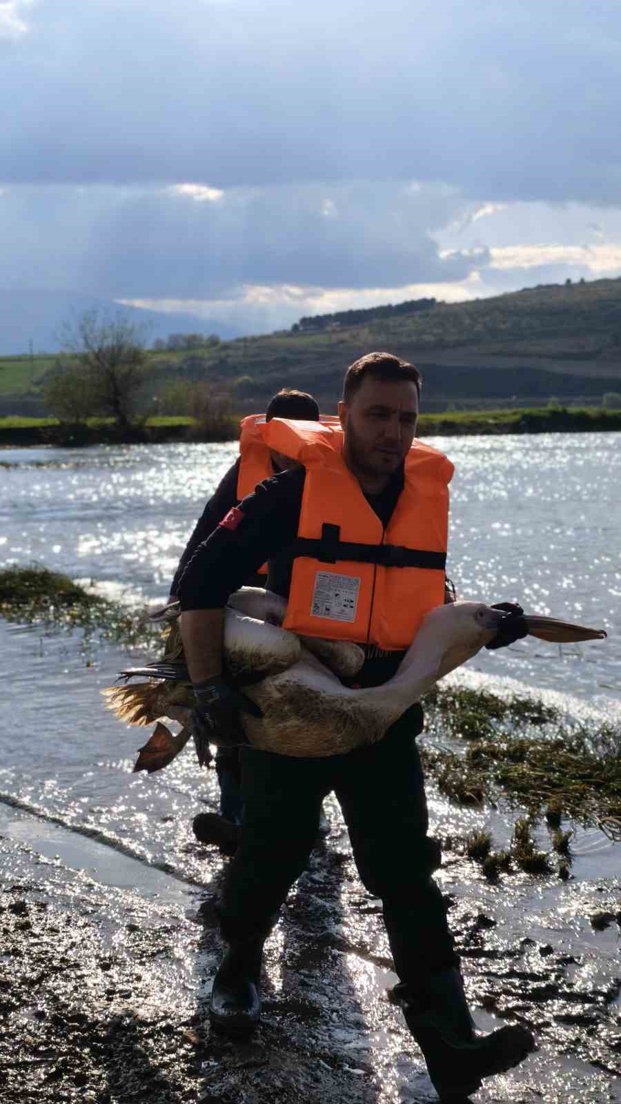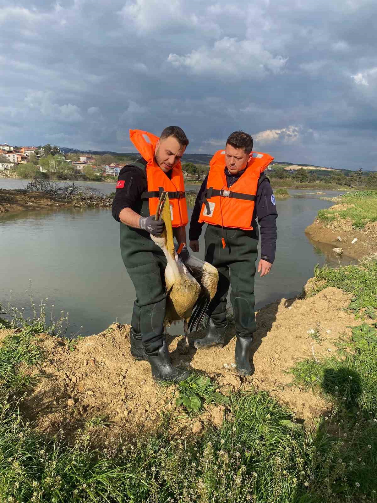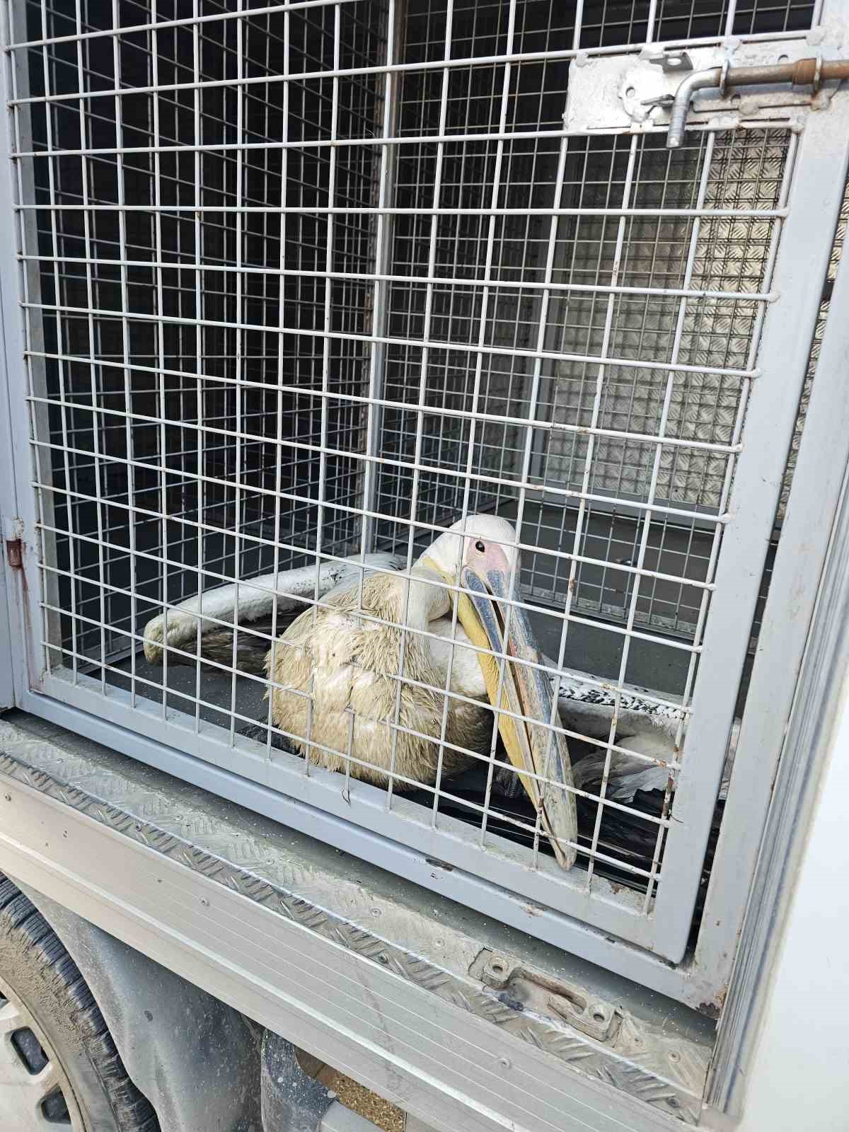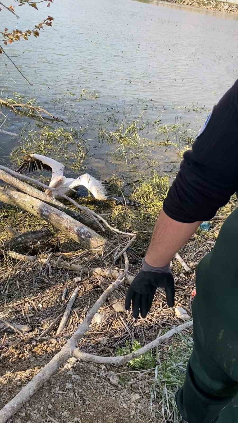 Barajda mahsur kalan pelikan böyle kurtarıldı