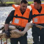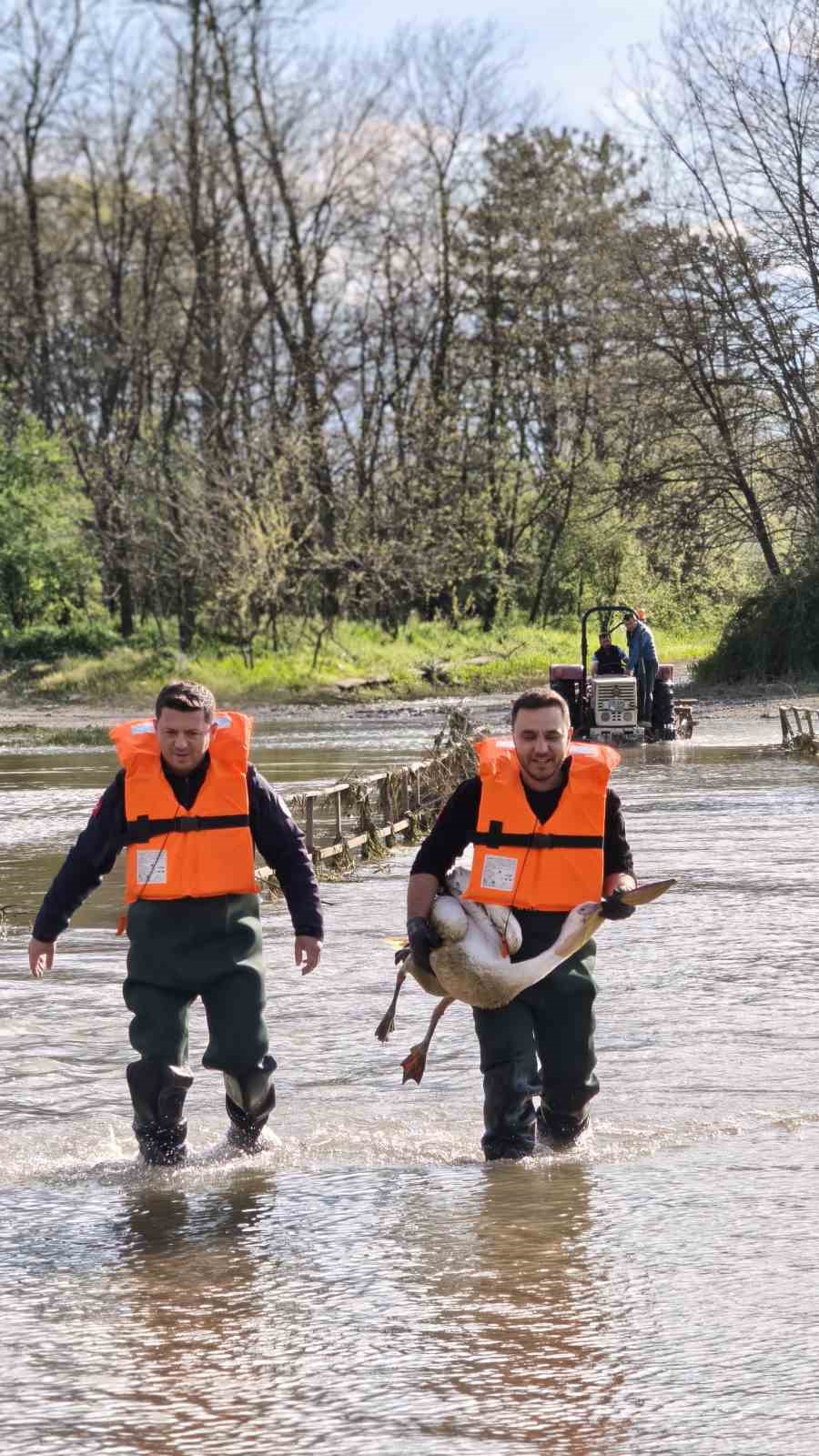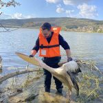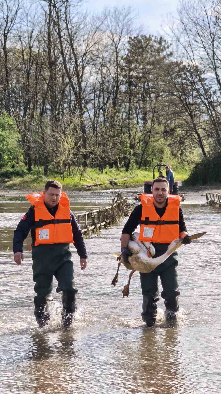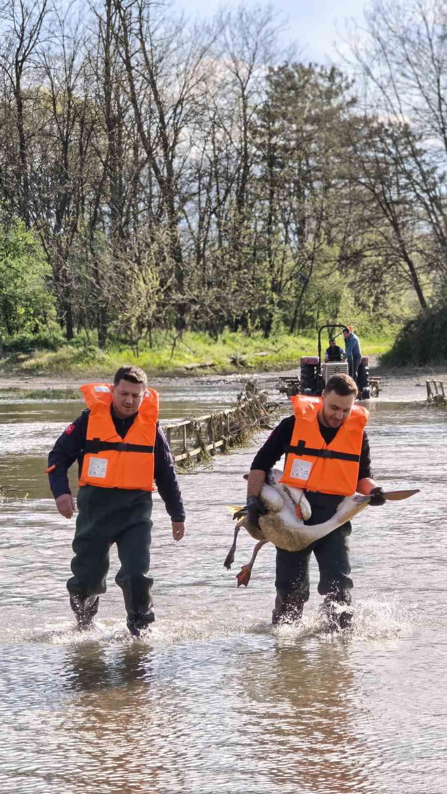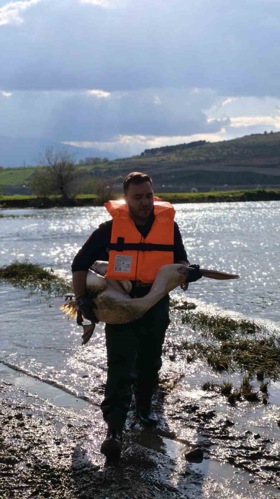 Barajda mahsur kalan pelikan böyle kurtarıldı